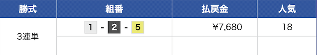 このレースの1番人気は、①−③−⑤の4.2倍。