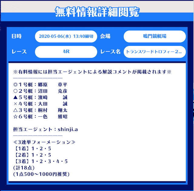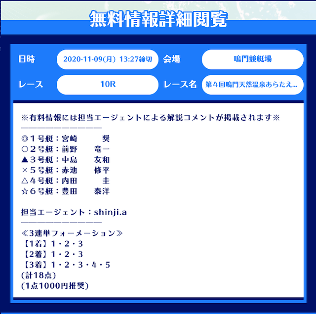 舟生の無料予想について
