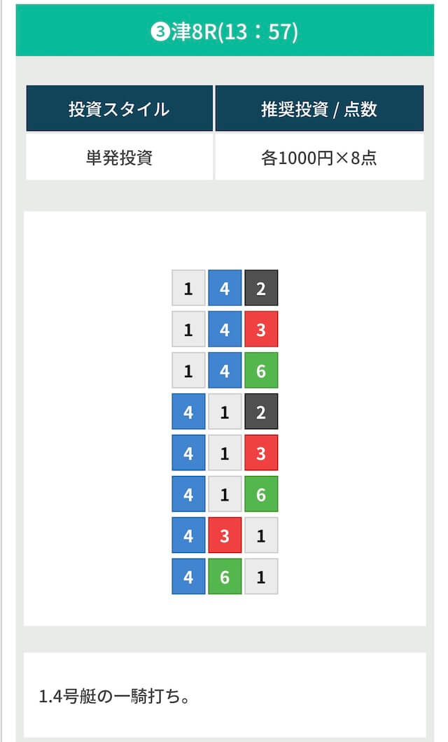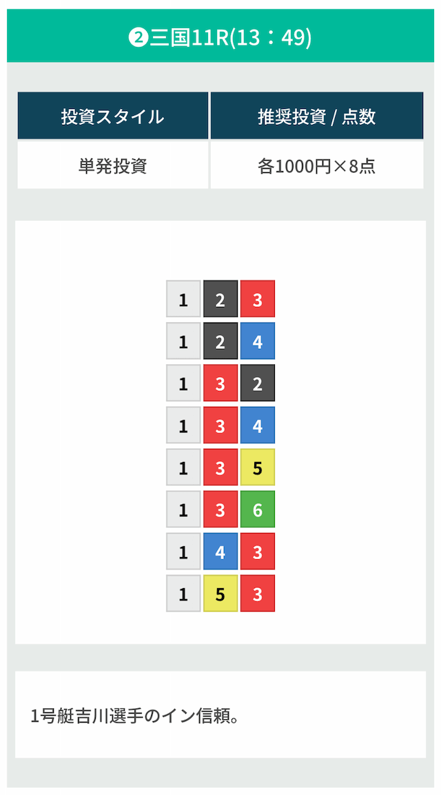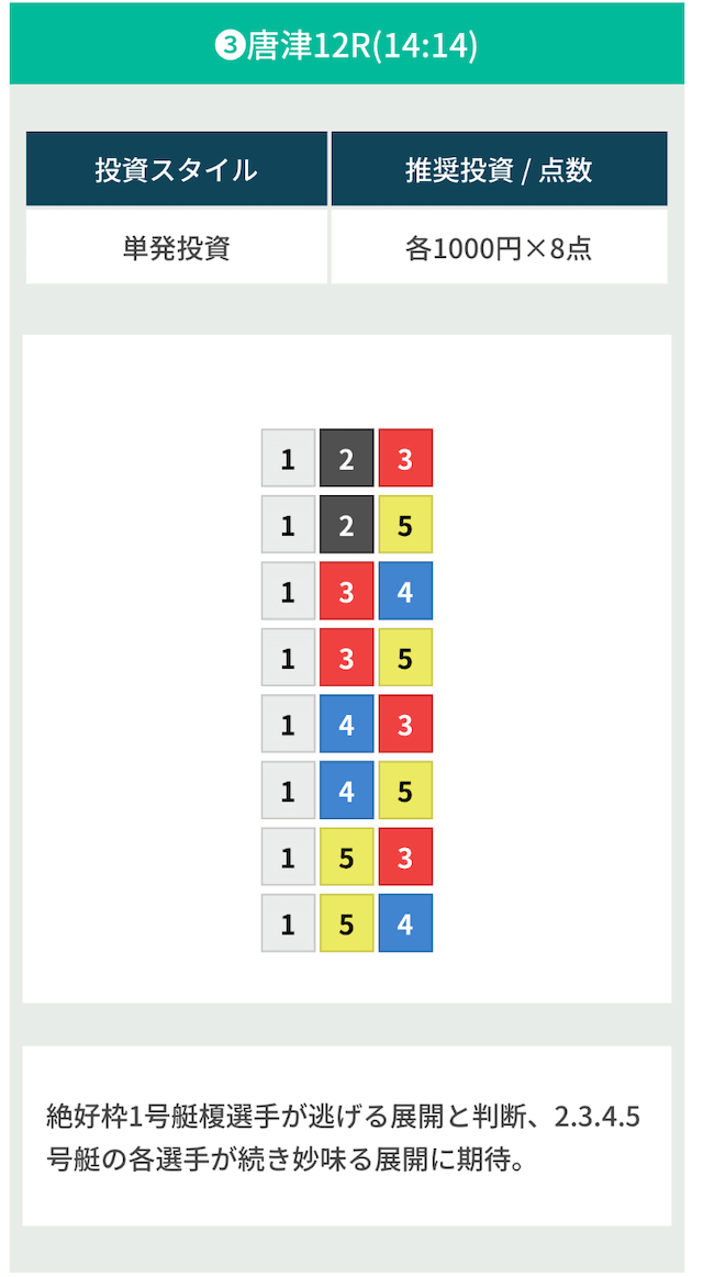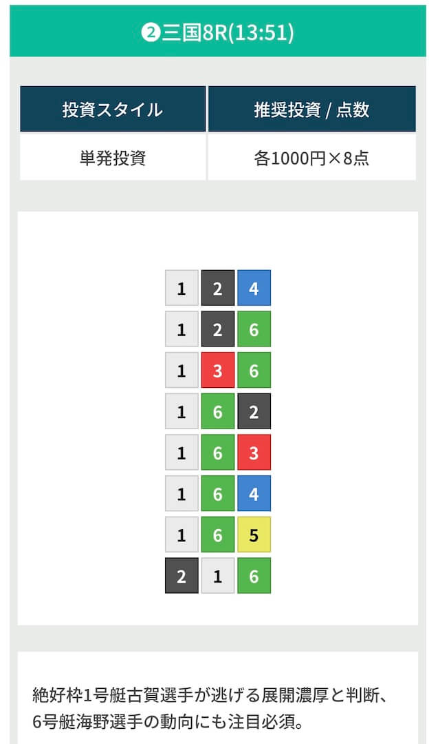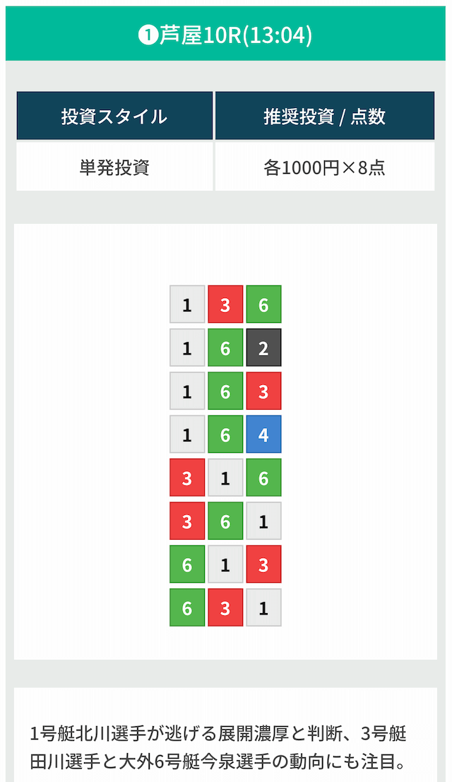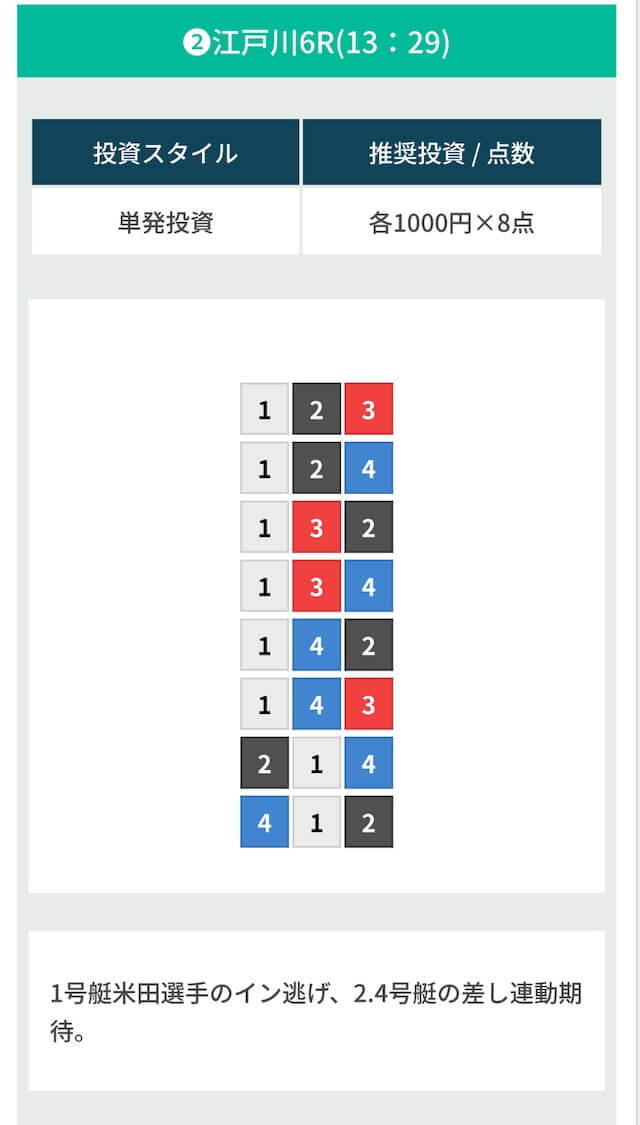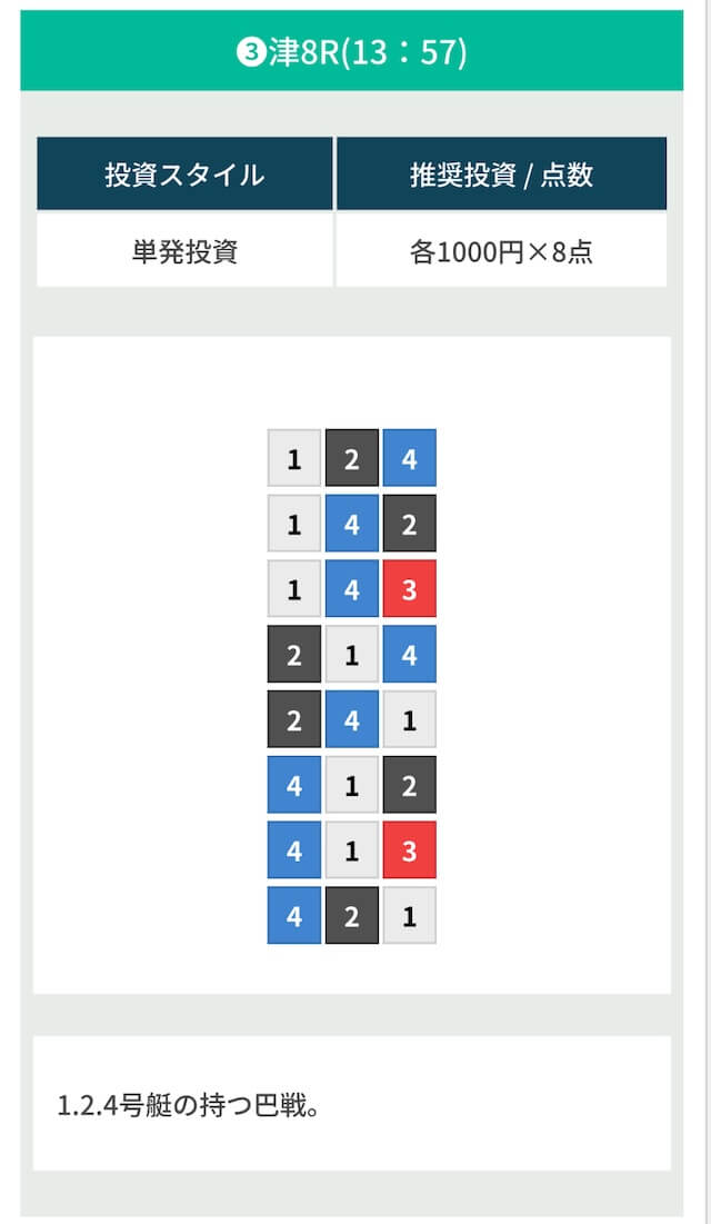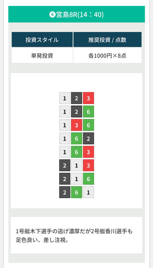 うーん、もう少し高配当のレースか、的中率高めるかしてほしい。悪くはないけど、イマイチ特徴ない競艇予想サイトな印象。