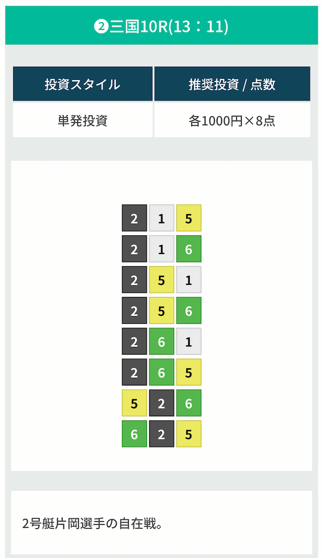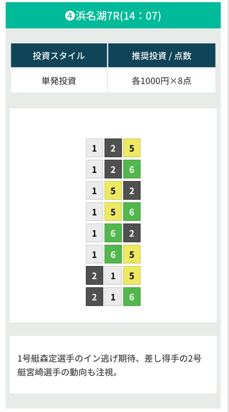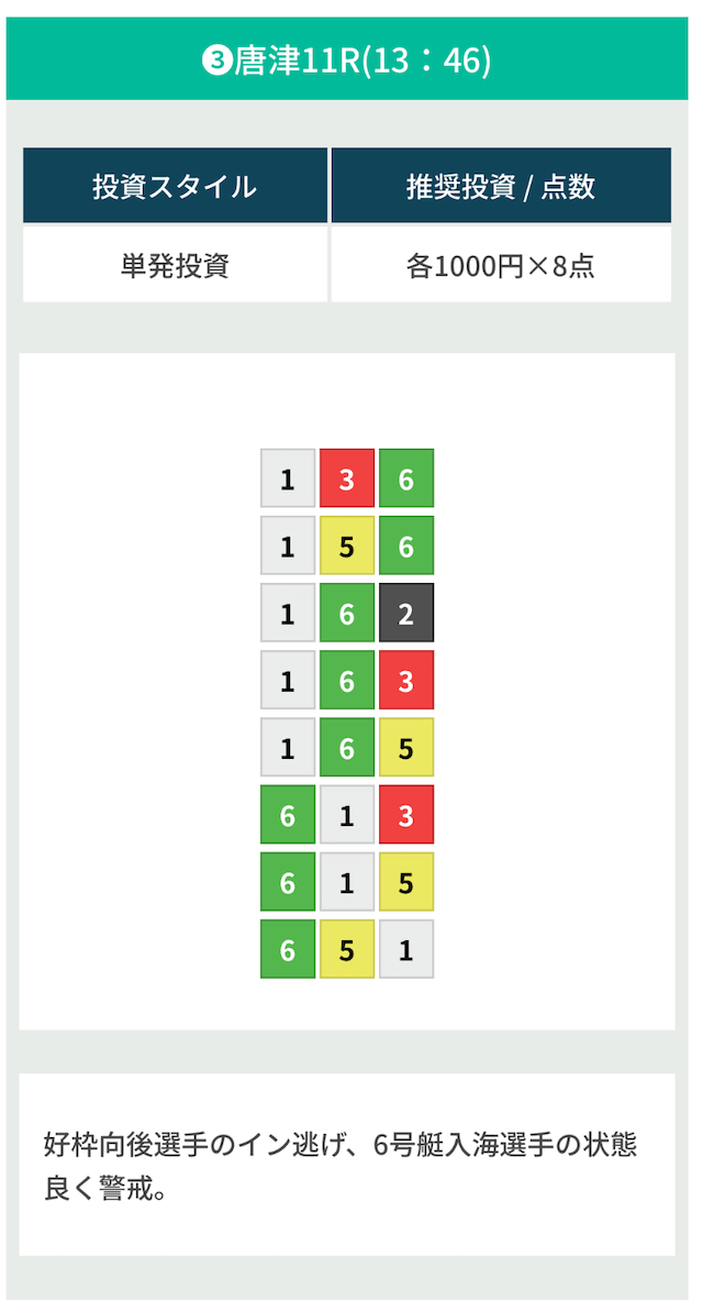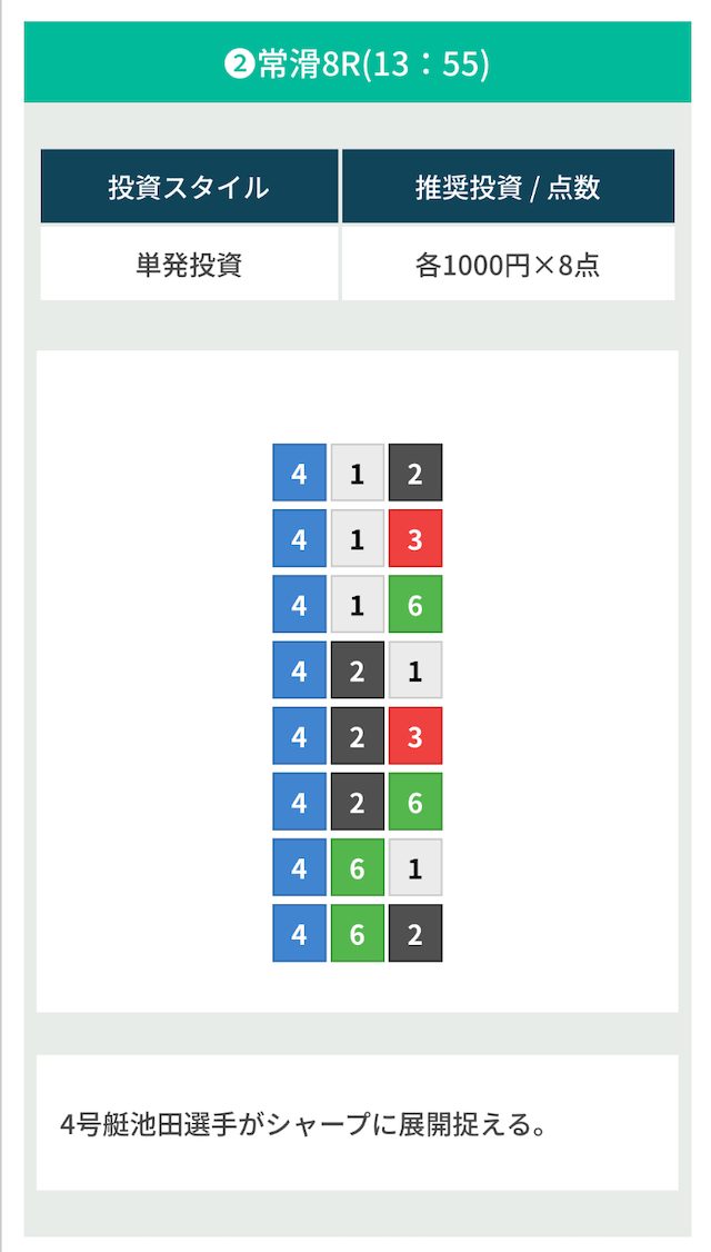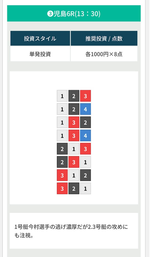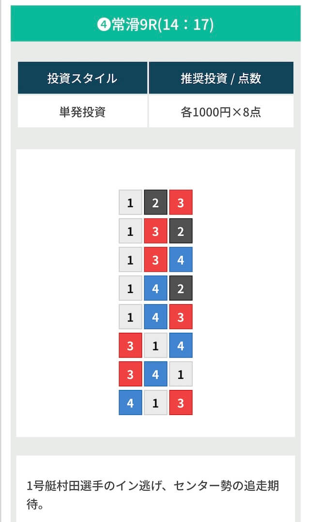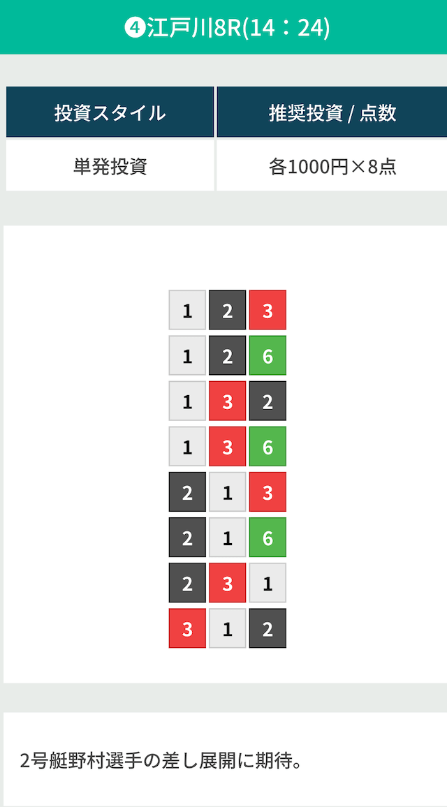 うーん、もう少し高配当のレースか、的中率高めるかしてほしい。悪くはないけど、イマイチ特徴ない競艇予想サイトな印象。