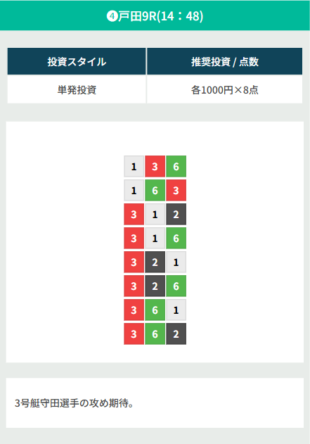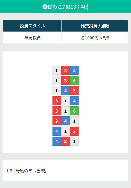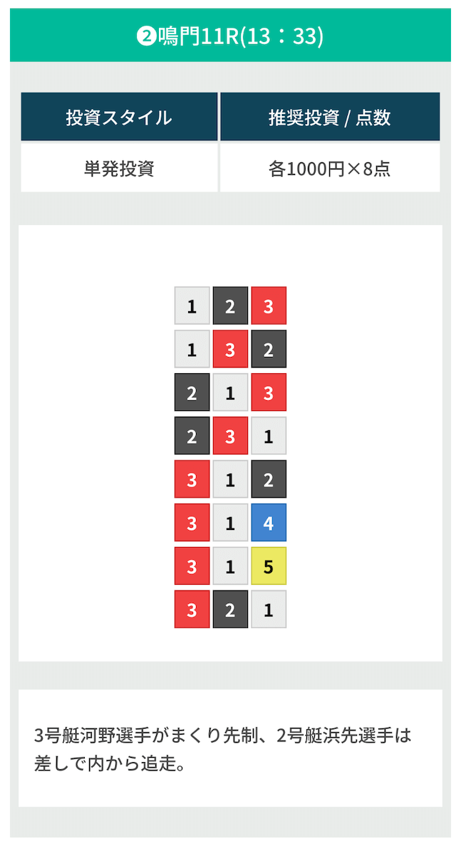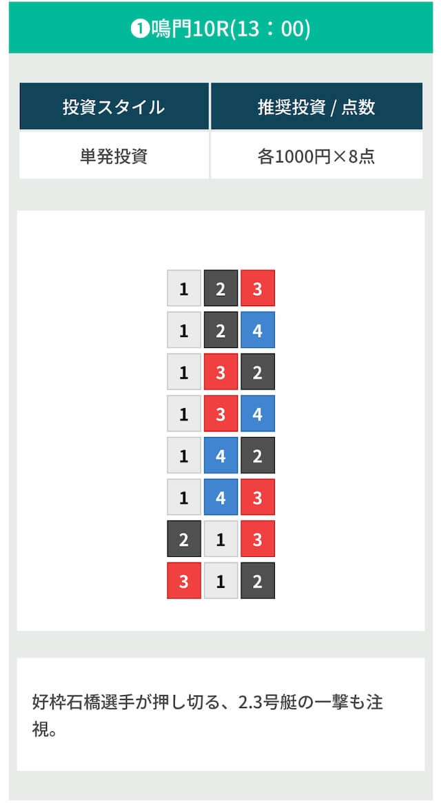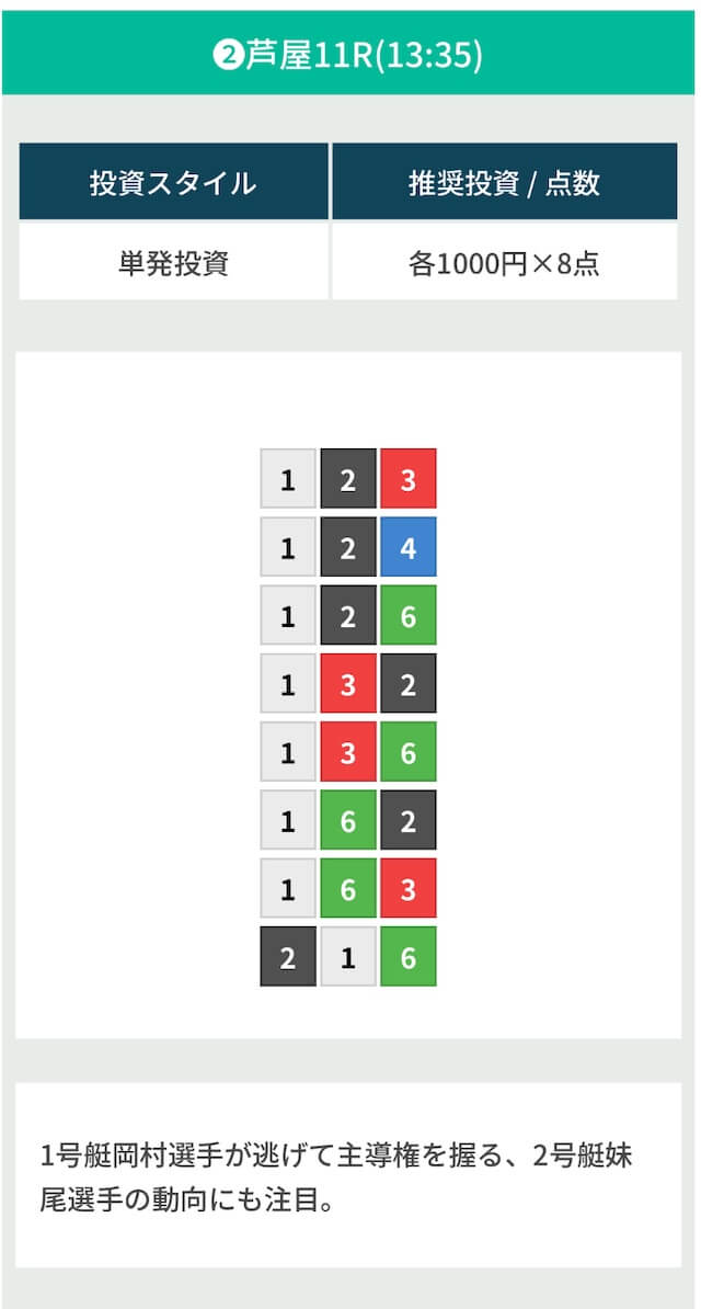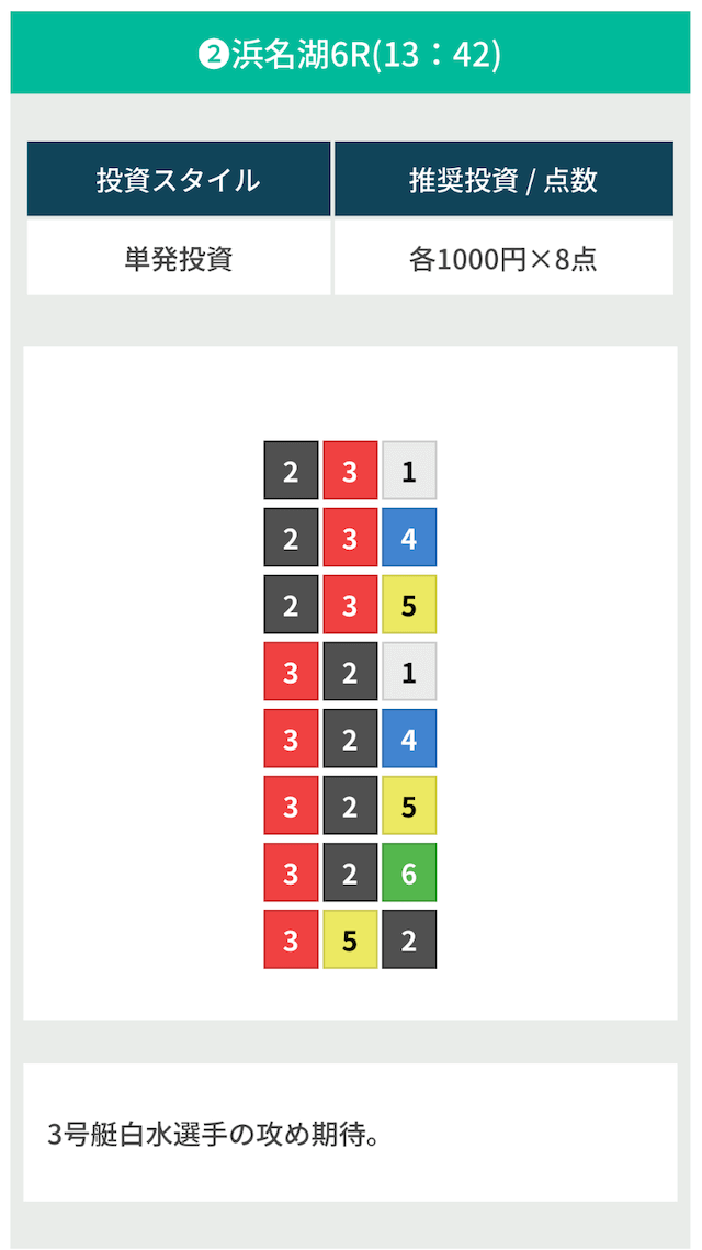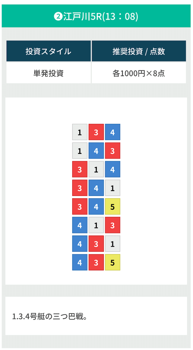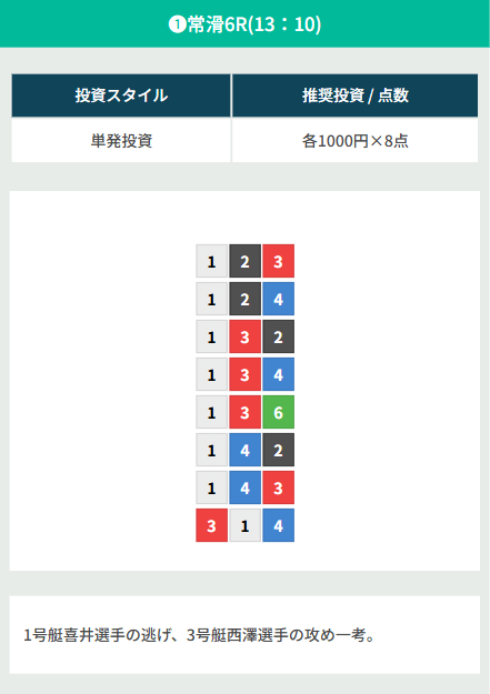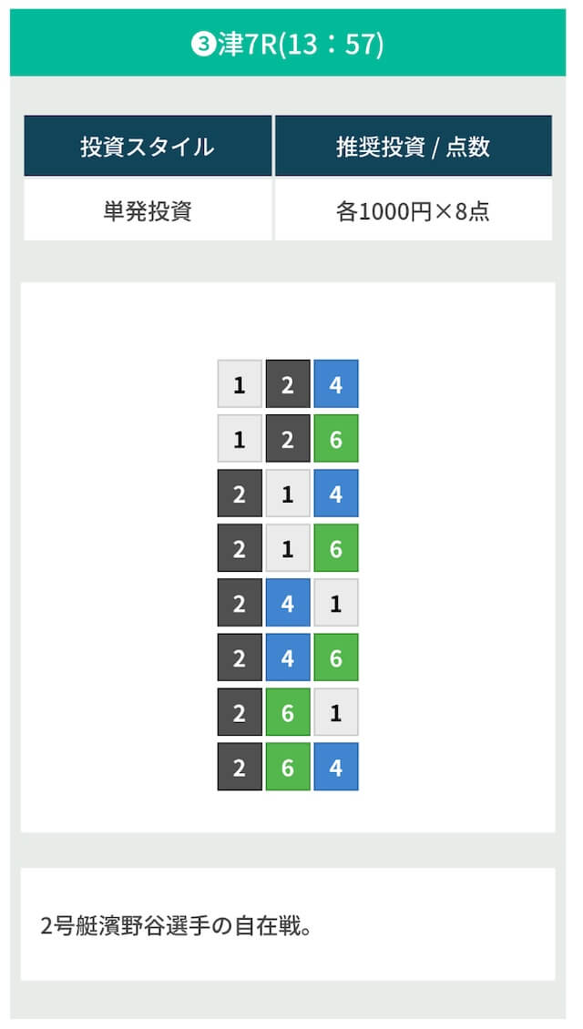 うーん、もう少し高配当のレースか、的中率高めるかしてほしい。悪くはないけど、イマイチ特徴ない競艇予想サイトな印象。