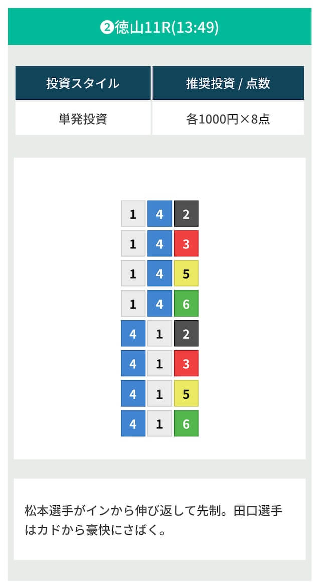 無料予想は的中率と回収率のバランスに優れているだけでなく、経験豊かな予想師の見解がついているので一見の価値があります。