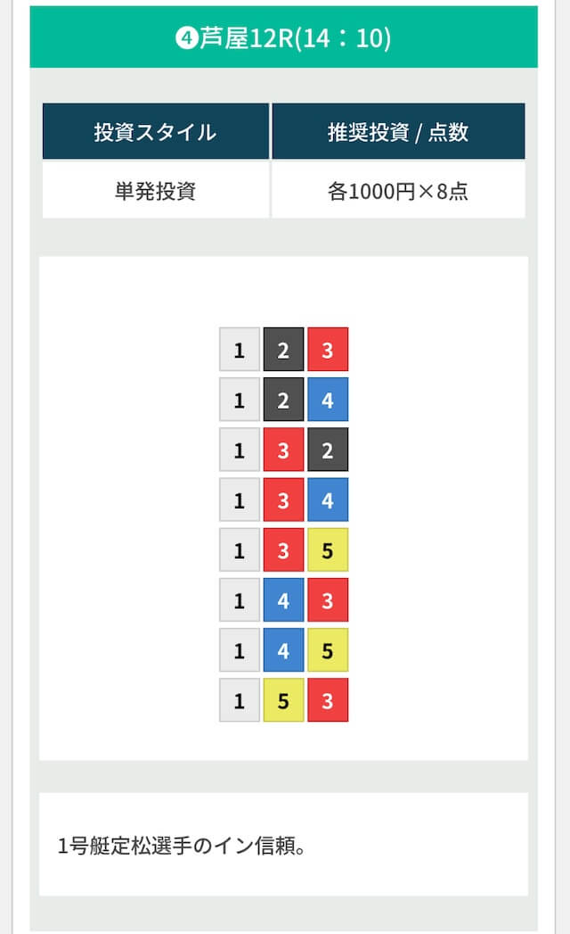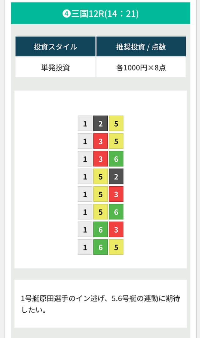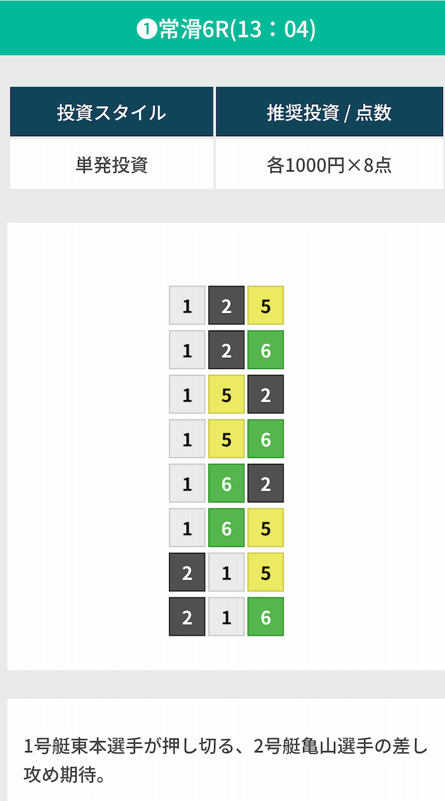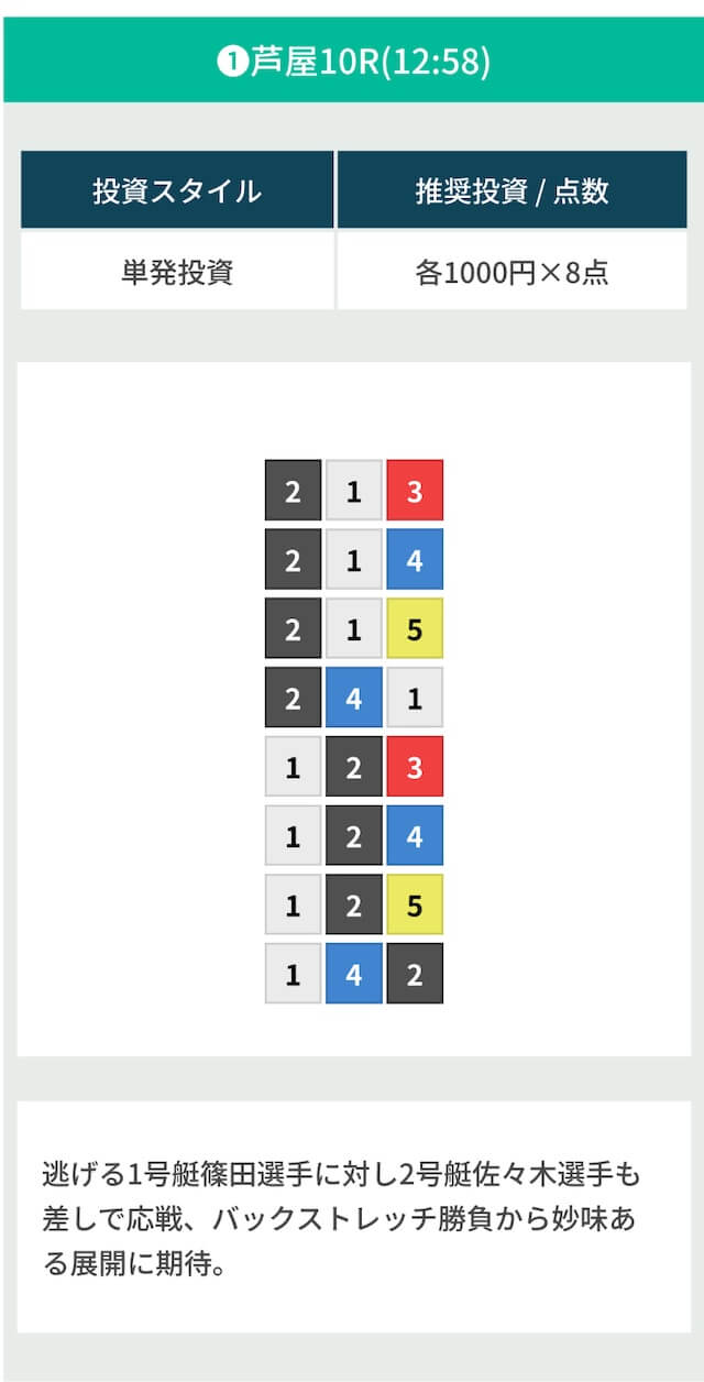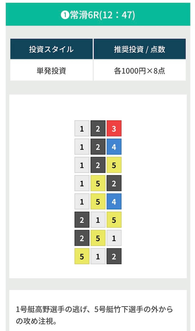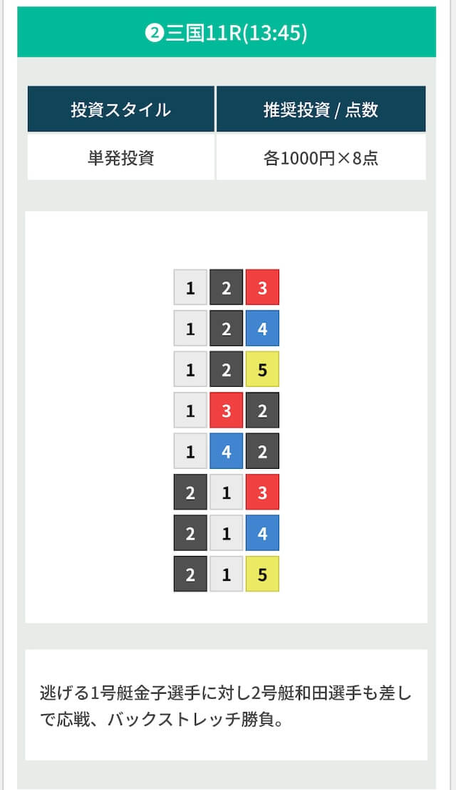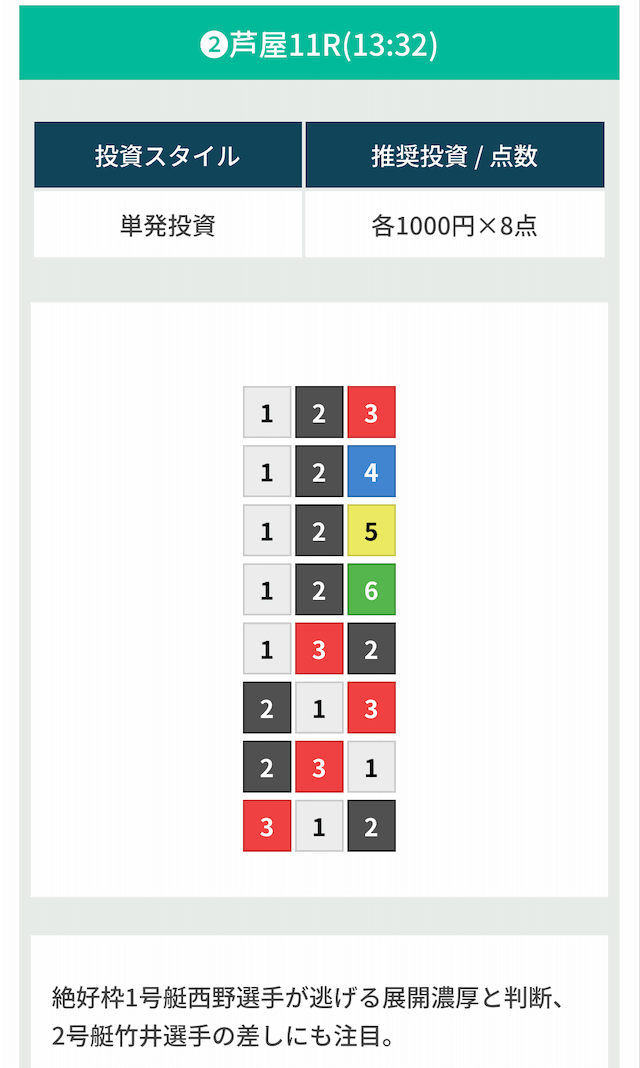 ここ以外に使ってる競艇予想サイトが結構穴狙いで、もう少しバランス感のある競艇予想サイトも試したかったからちょうど良かったです。