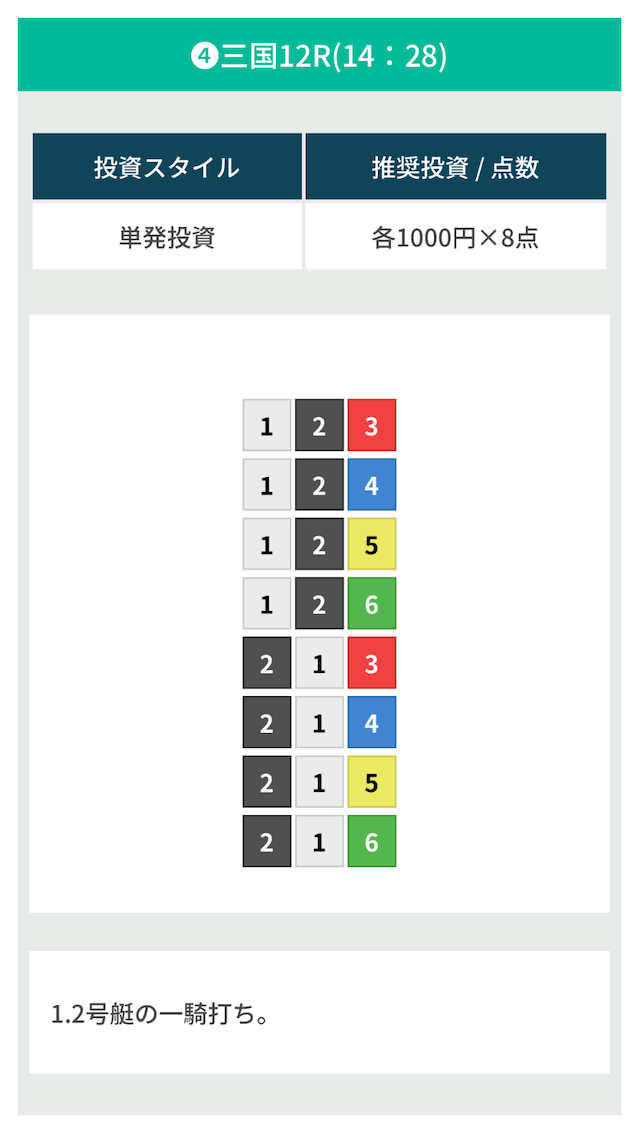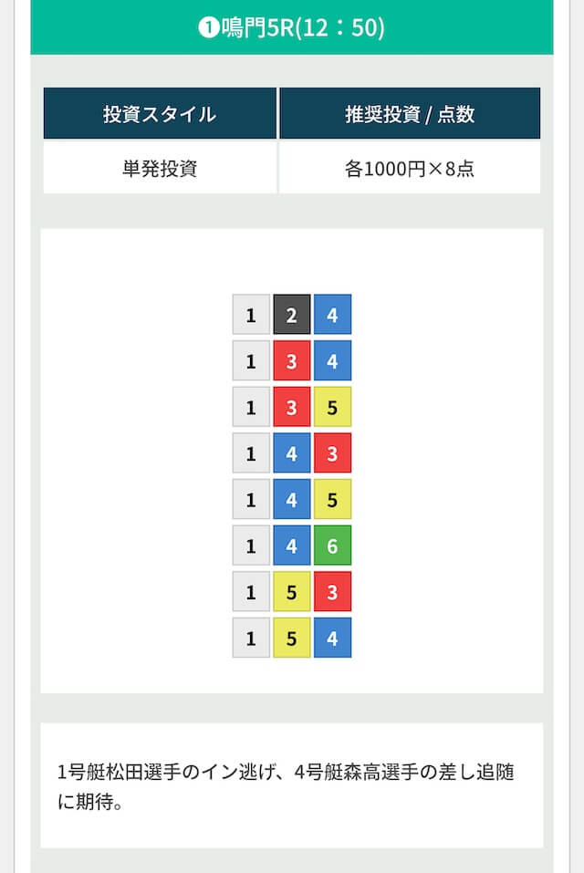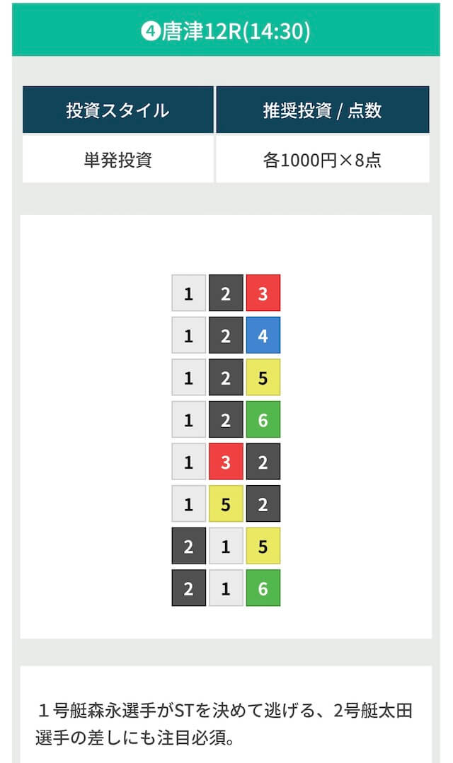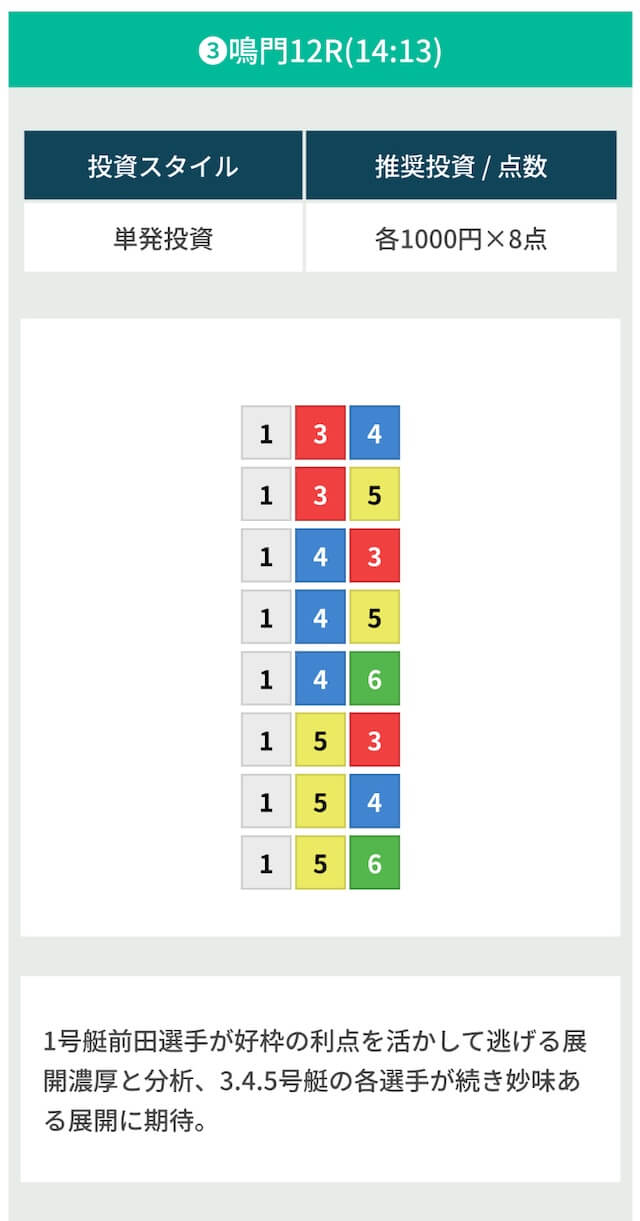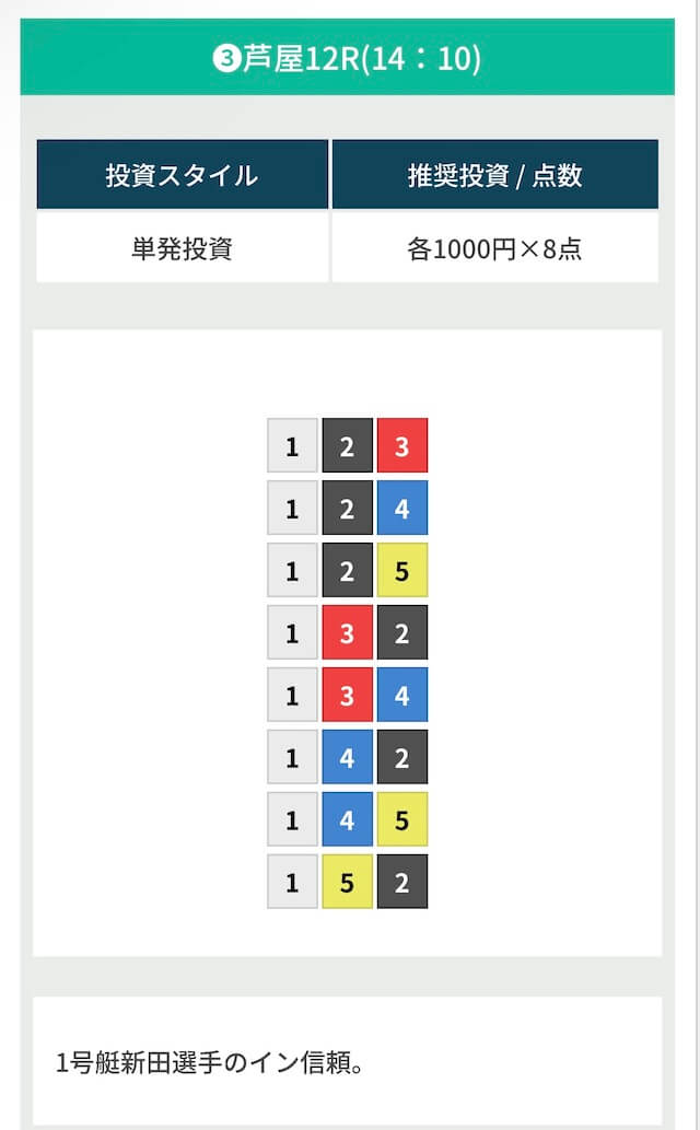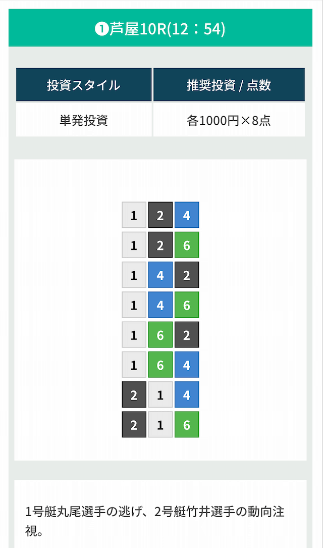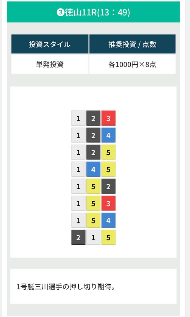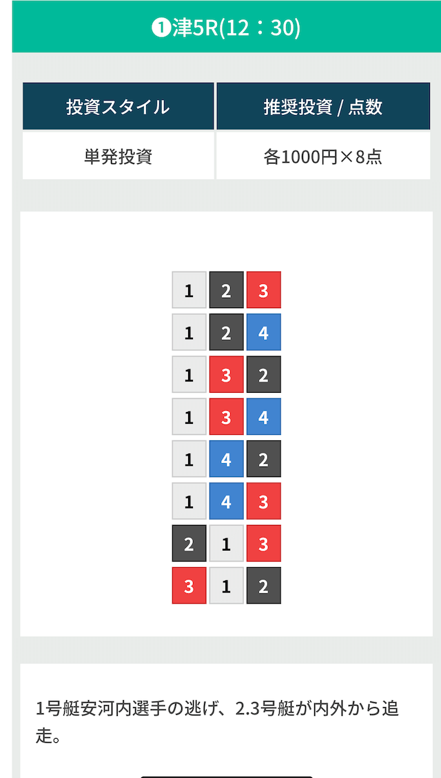 ここ以外に使ってる競艇予想サイトが結構穴狙いで、もう少しバランス感のある競艇予想サイトも試したかったからちょうど良かったです。