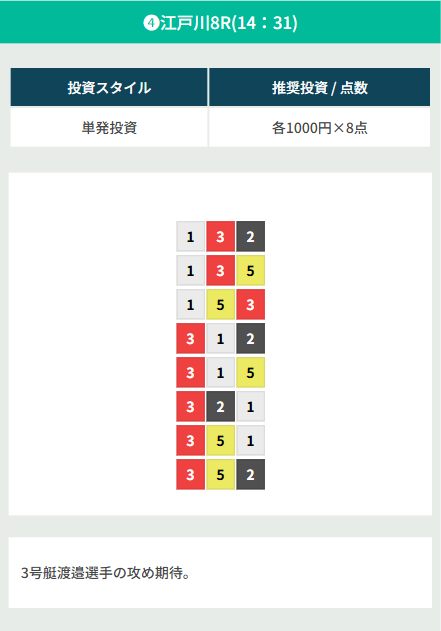- Q4推奨どおりに舟券が買えません。それでもいいですか?Aあくまで推奨なので無理のない金額で勝負することが大事です。まずは少ない資金でコツコツ貯めて推奨に合わせていけば問題ありません。