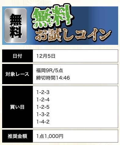 ’22/12/05 的中無料予想で13,900円の獲得に成功