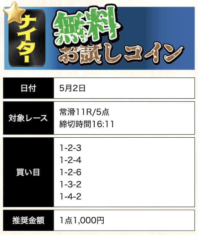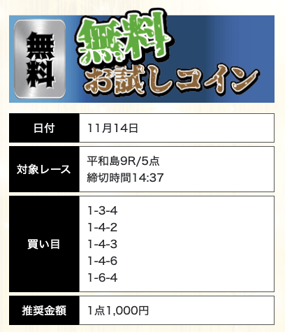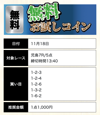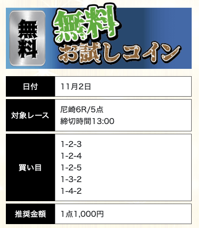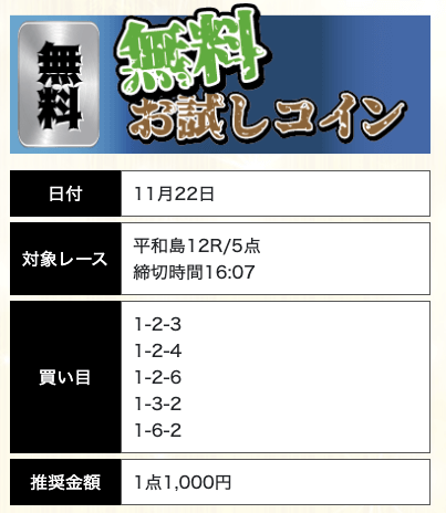 ’22/11/02 的中無料予想で33,600円の獲得に成功