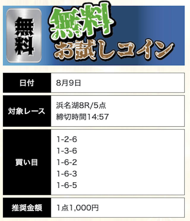 特典で登録を仰ぐ悪質な競艇予想サイトではないと断言できるので安心してください。