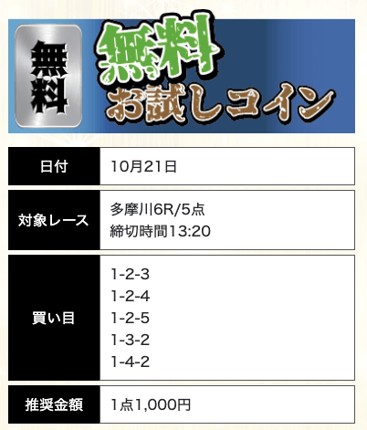 ’22/10/04 的中無料予想で19,700円の獲得に成功
