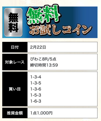 ’23/02/22 的中無料予想で26,100円の獲得に成功