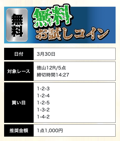 ’23/03/24 的中無料予想で16,600円の獲得に成功