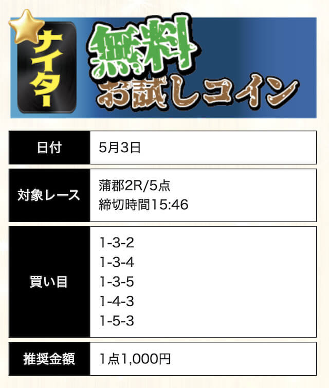 ’23/05/03 的中無料予想で47,400円の獲得に成功