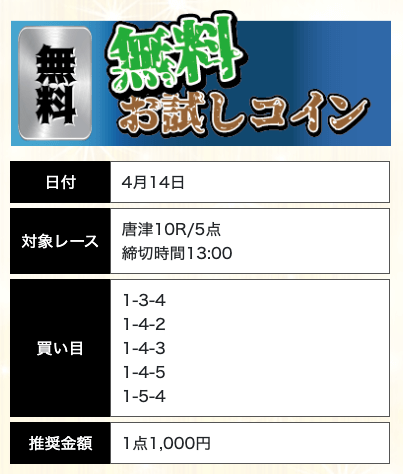 ’23/04/07 的中無料予想で38,600円の獲得に成功