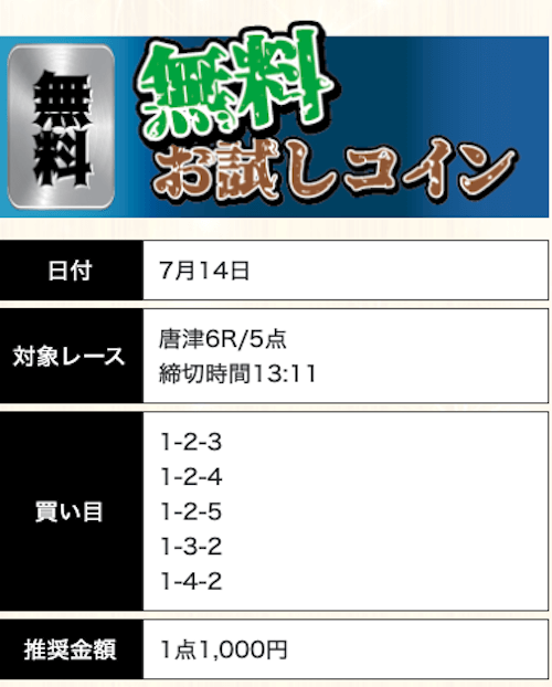 ’23/07/03 的中無料予想で10,300円の獲得に成功