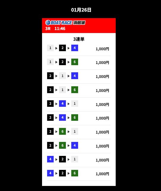 ’26/01/22 的中無料予想で21,000円の払い戻しを獲得