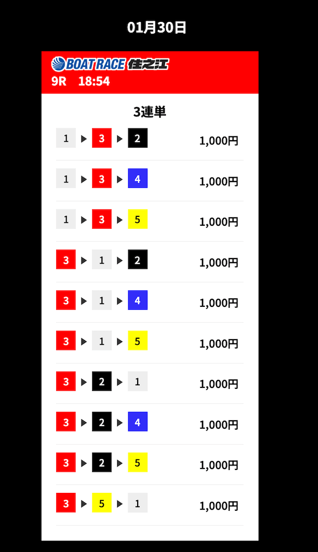 ’25/01/30 的中無料予想で14,700円の払い戻しを獲得