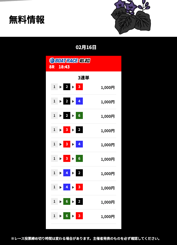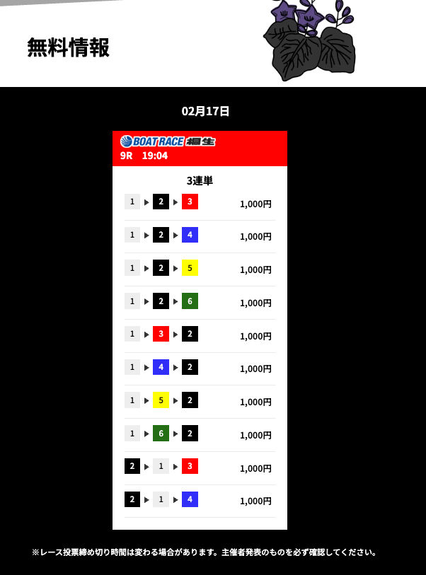 ’25/02/18 的中無料予想で12,000円の払い戻しを獲得