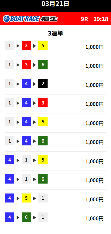 ’26/03/10 的中無料予想で21,200円の払い戻しを獲得