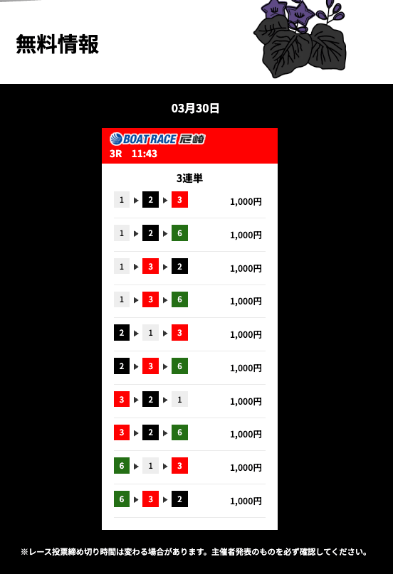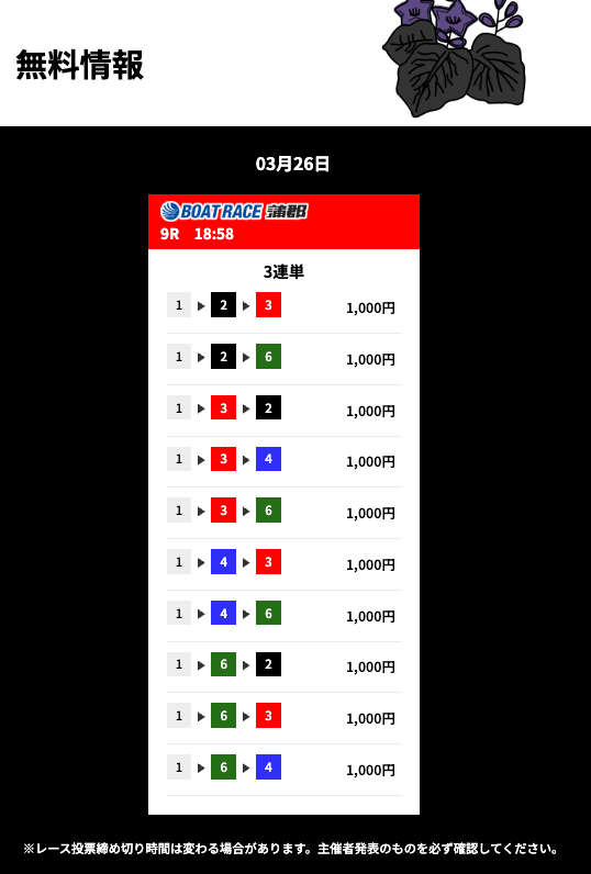 ’26/03/03 的中無料予想で32,100円の払い戻しを獲得