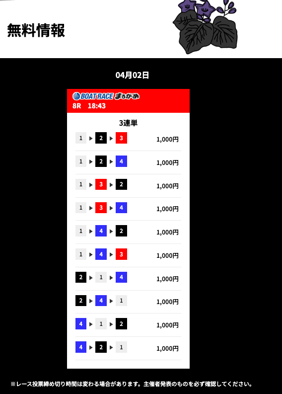 ’25/04/01 的中無料予想で13,800円の払い戻しを獲得