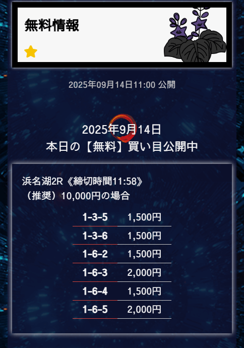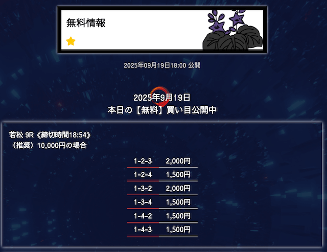 ’25/09/02 的中無料予想で14,000円の払い戻しを獲得
