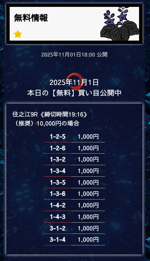 ’25/10/06 的中無料予想で28,300円の払い戻しを獲得