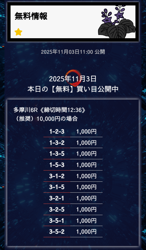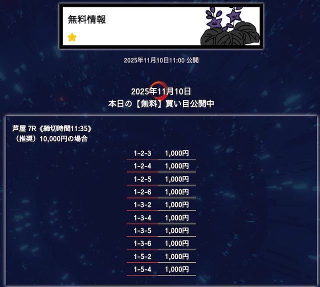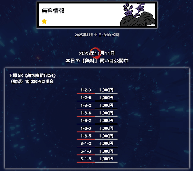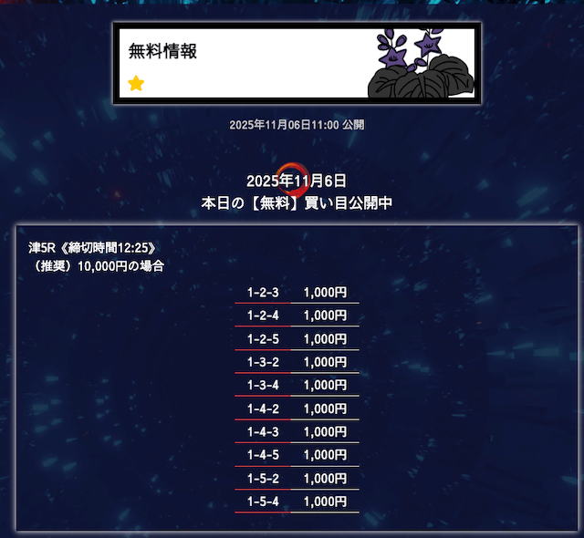 ’25/11/11 的中無料予想で13,400円の払い戻しを獲得