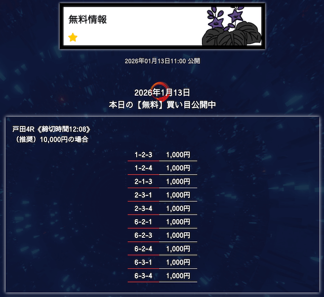 ’24/11/13 的中無料予想で13,000円の払い戻しを獲得