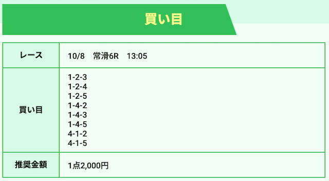 ’25/10/16 的中無料予想で40,200円獲得