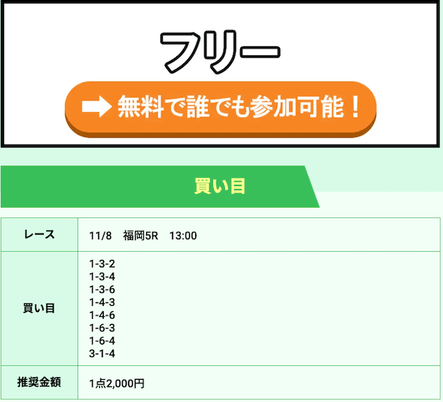 ’25/11/08 的中無料予想で17,800円獲得