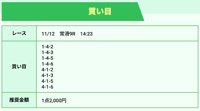 ’25/11/17 的中無料予想で44,400円獲得