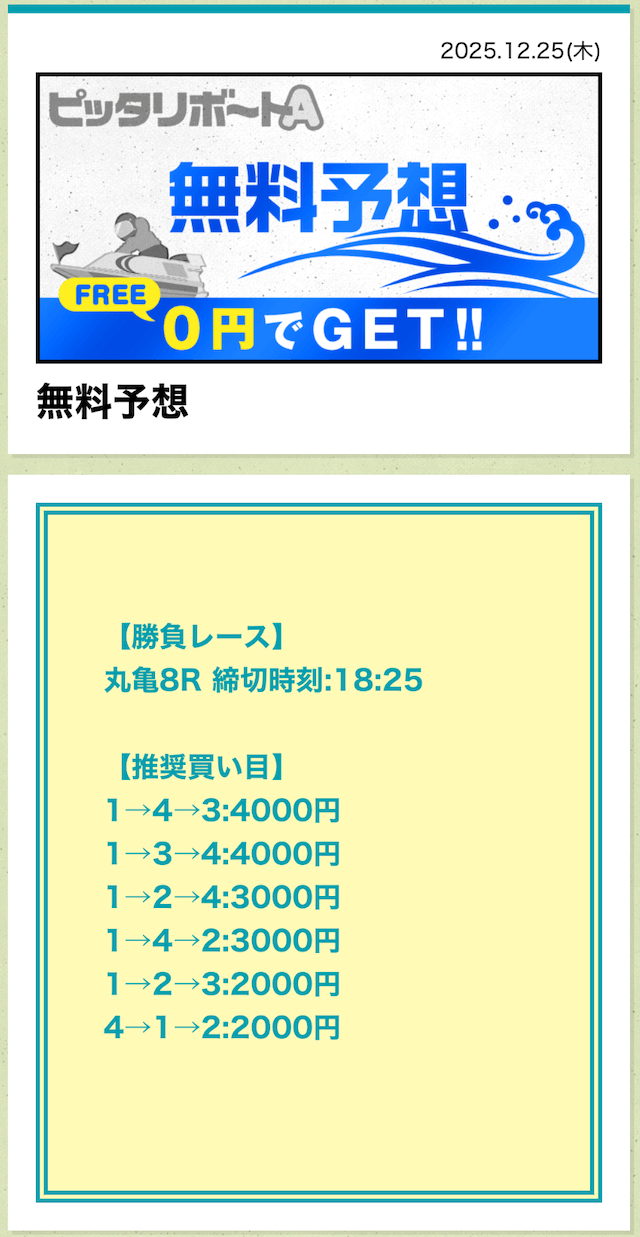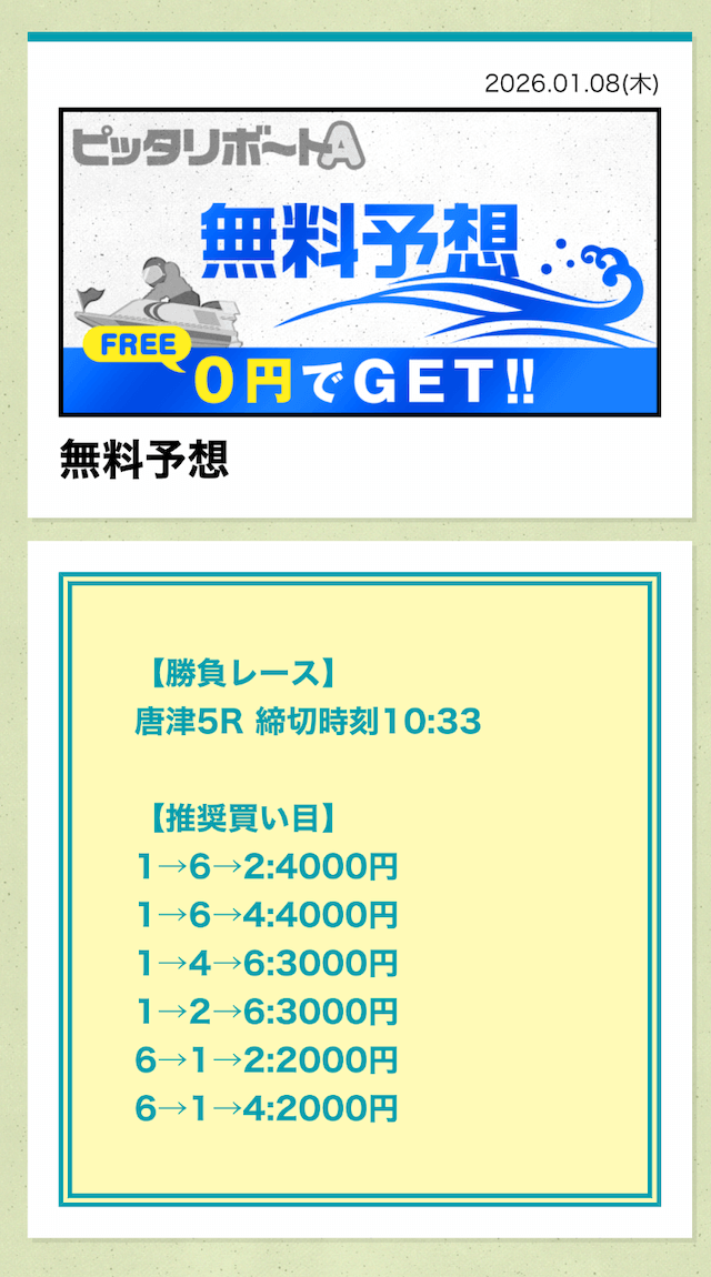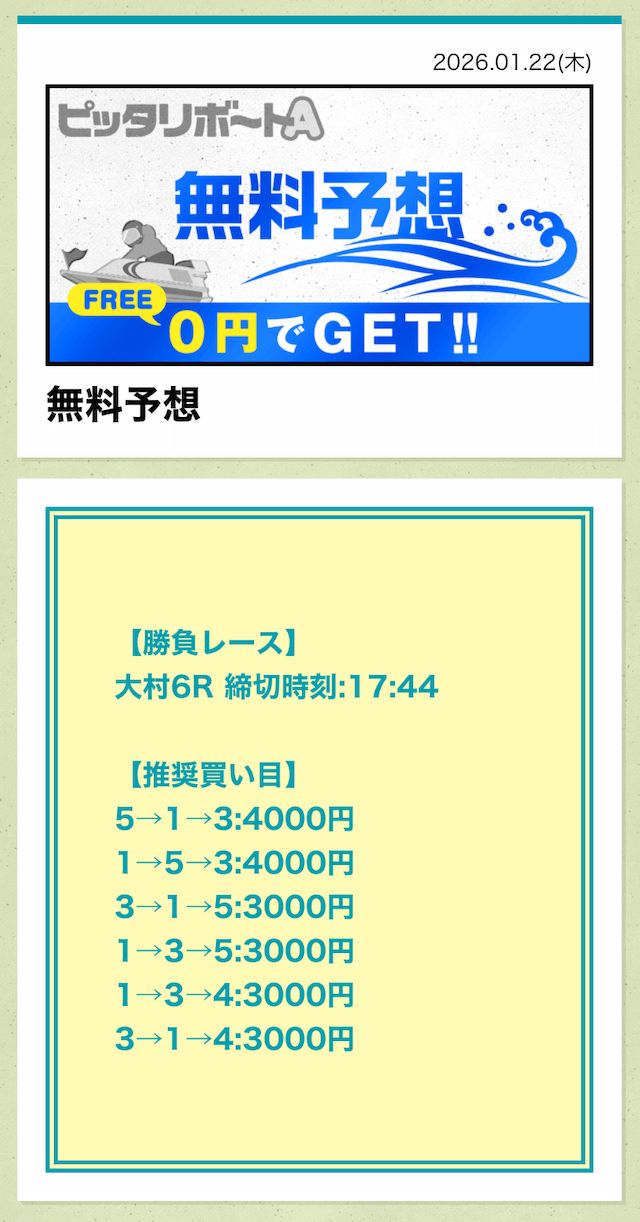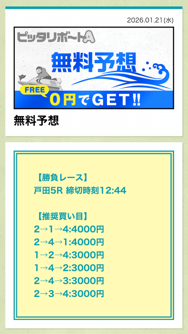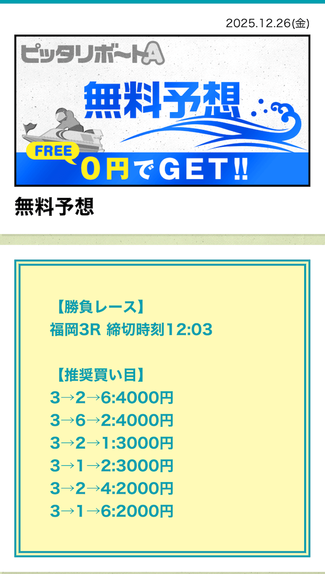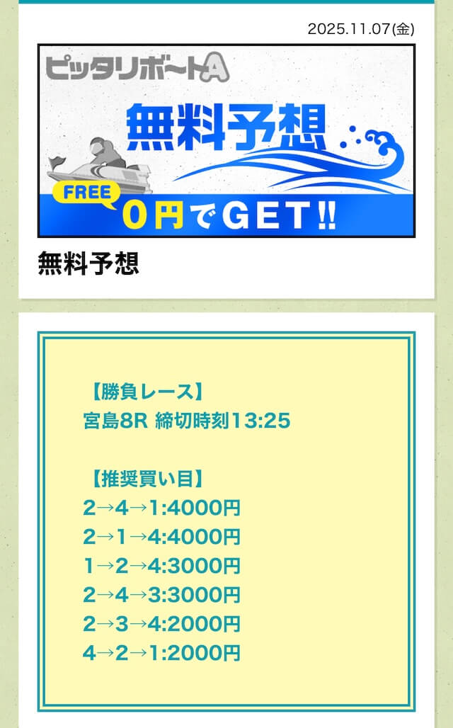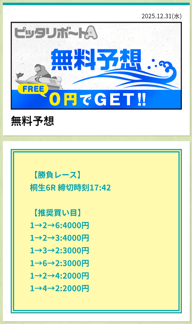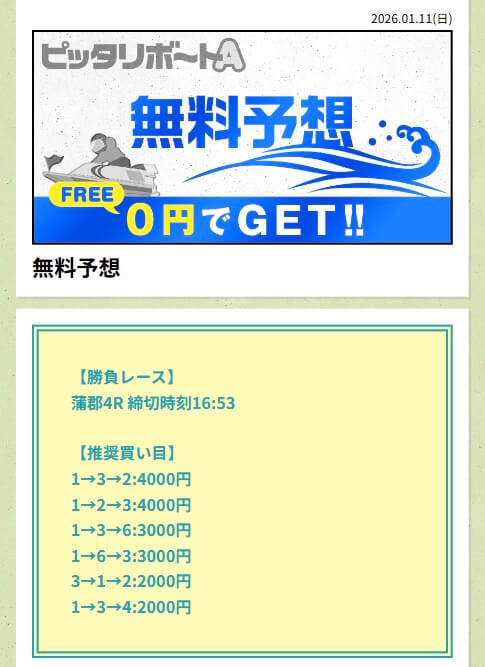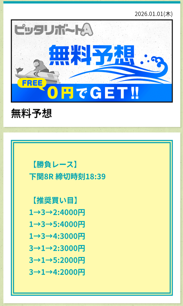 なかなか当ててくれるから、毎日無料予想を公開してくれるとありがたいですね。