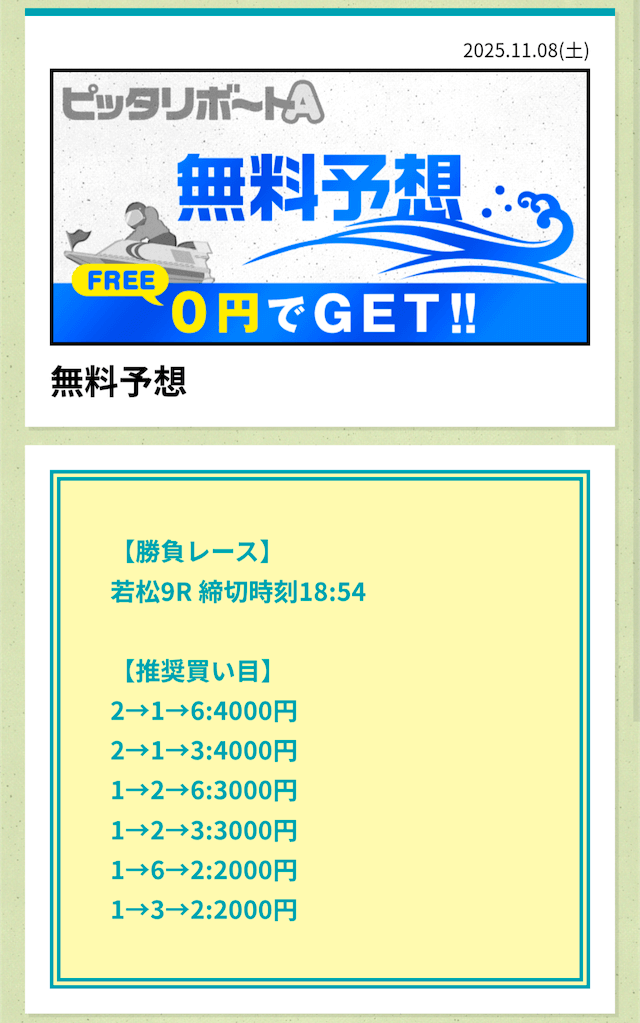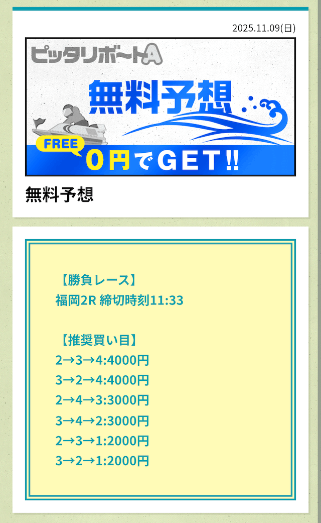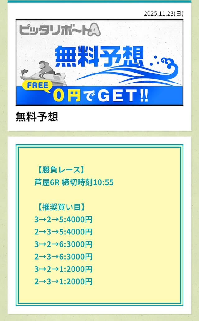 ’25/11/10 的中無料予想で31,800円獲得