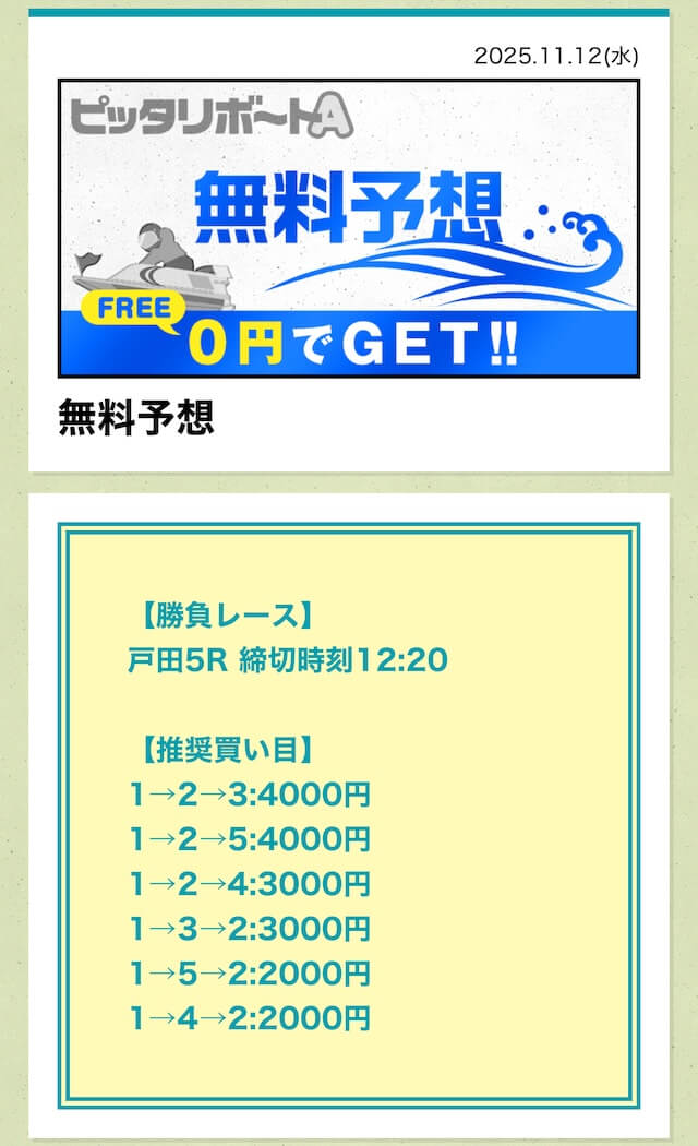 ’25/11/12 的中無料予想で81,600円獲得