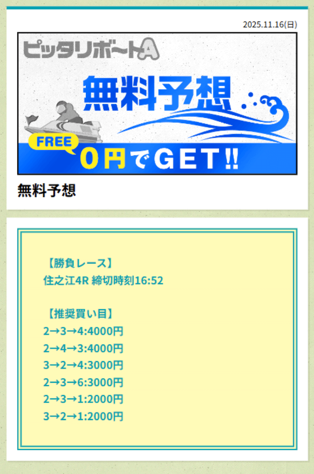 ’25/11/16 的中無料予想で62,700円獲得