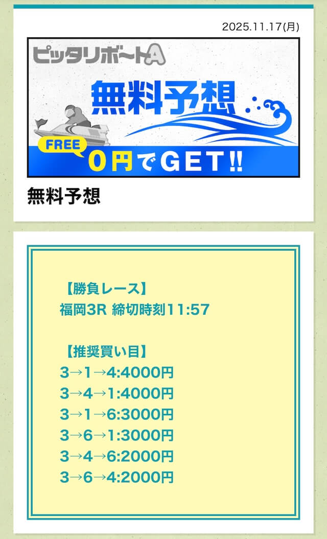 ’25/10/31 的中無料予想で18,000円獲得