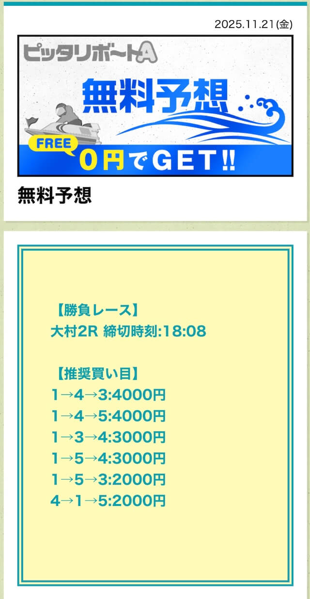 ’25/11/21 的中無料予想で37,500円獲得