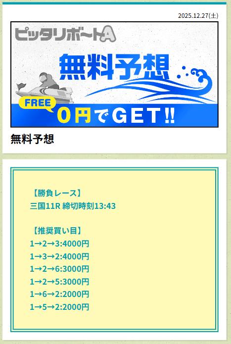 ピッタリボートAは、予想の精度と払戻のインパクトに優れるサイト。