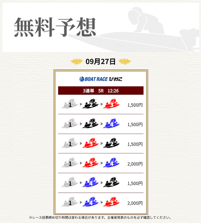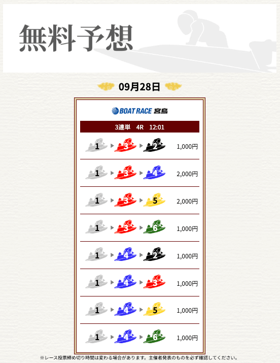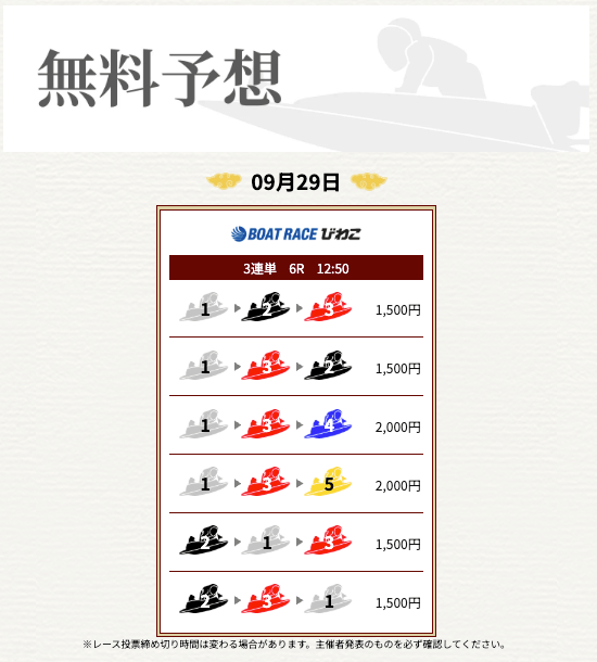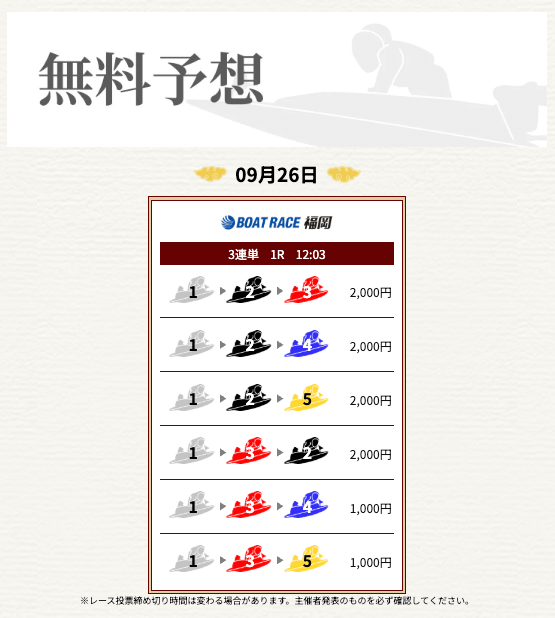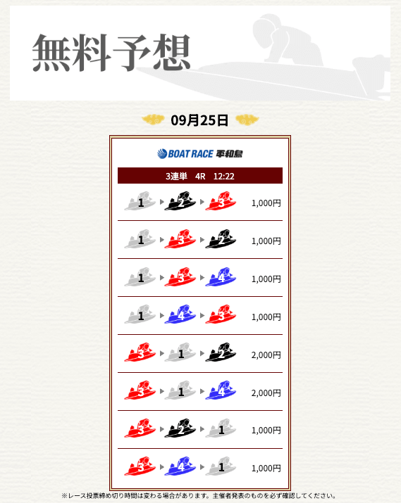 ’25/09/12 的中無料予想で29,000円獲得