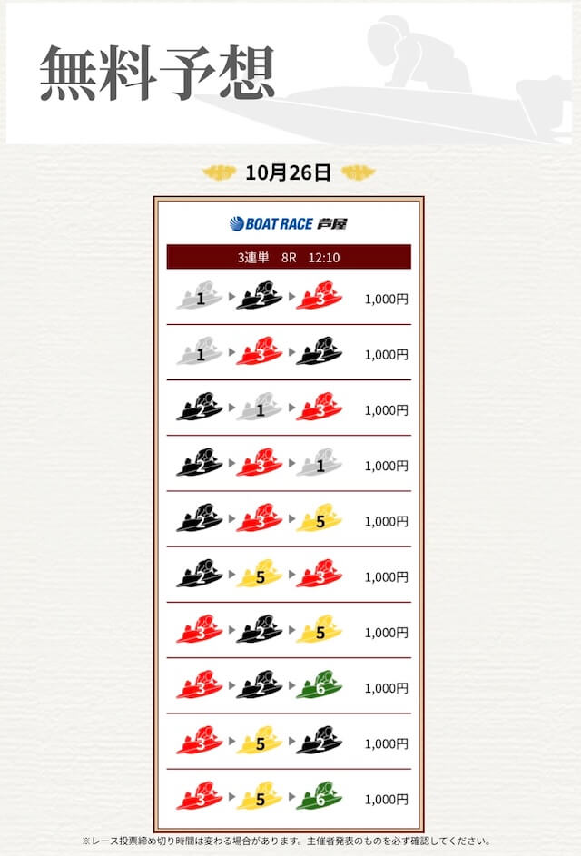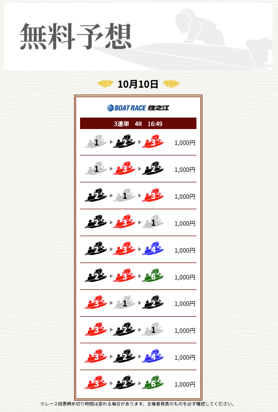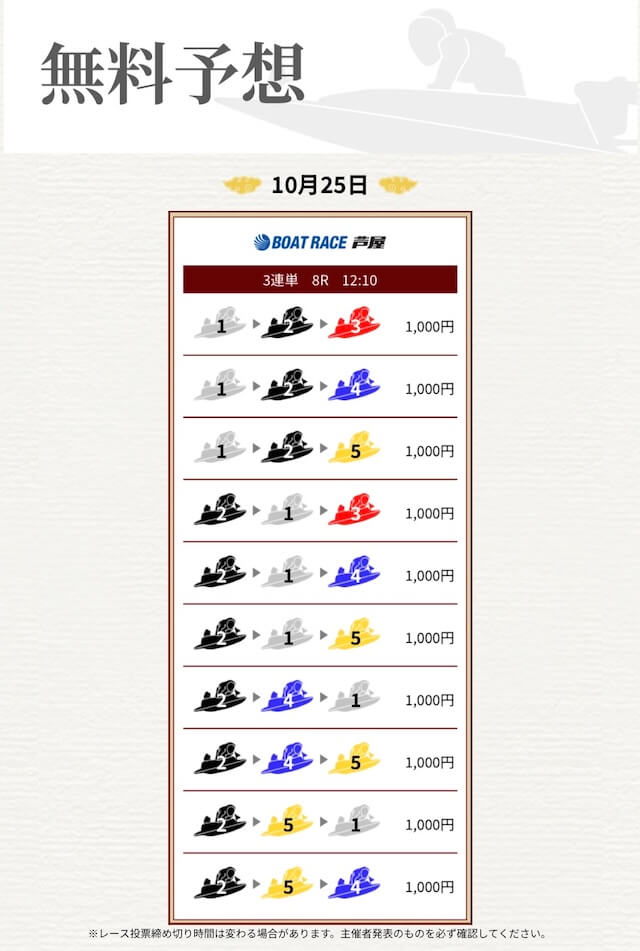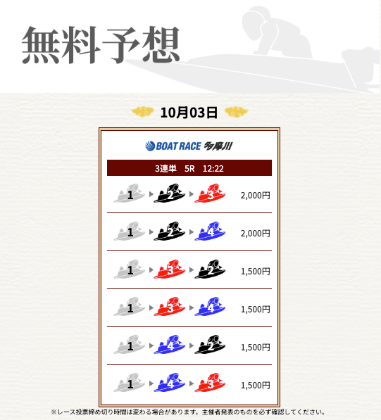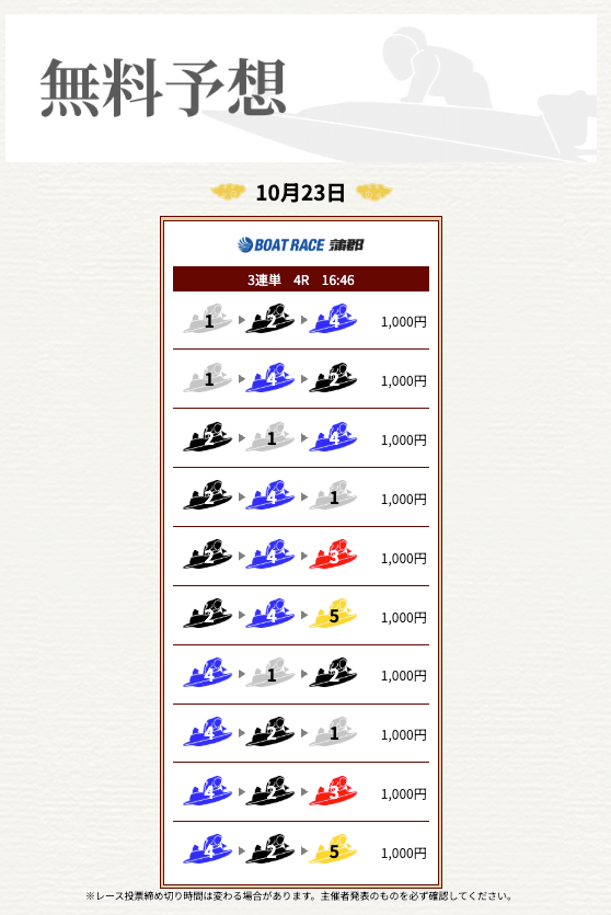’25/10/23 的中無料予想で21,500円獲得