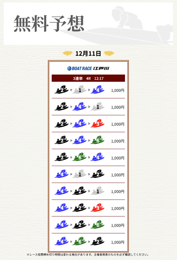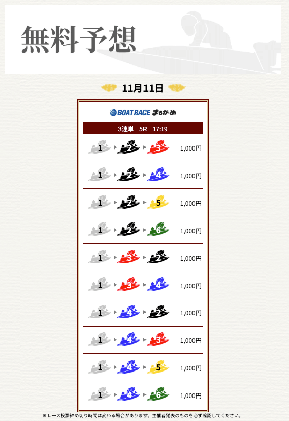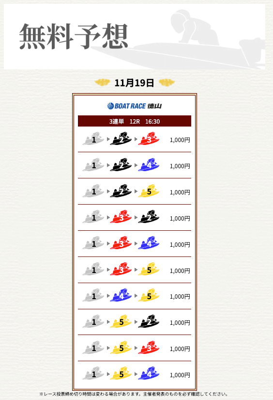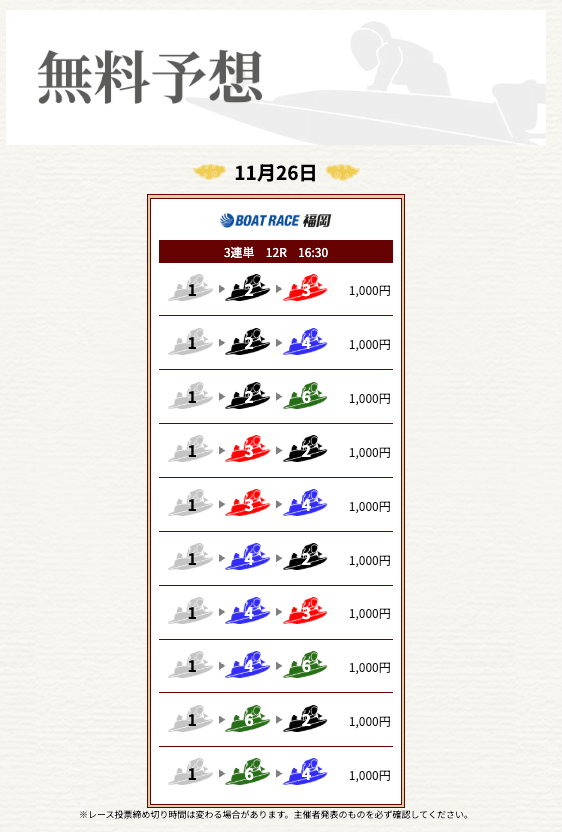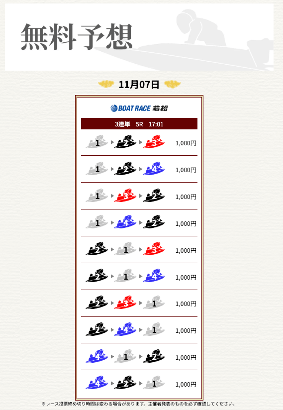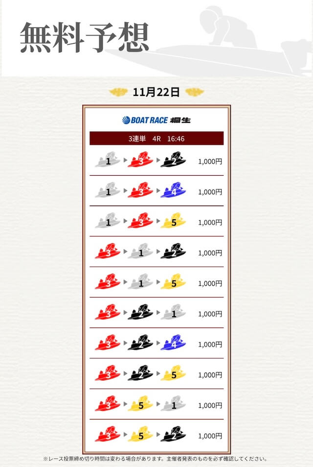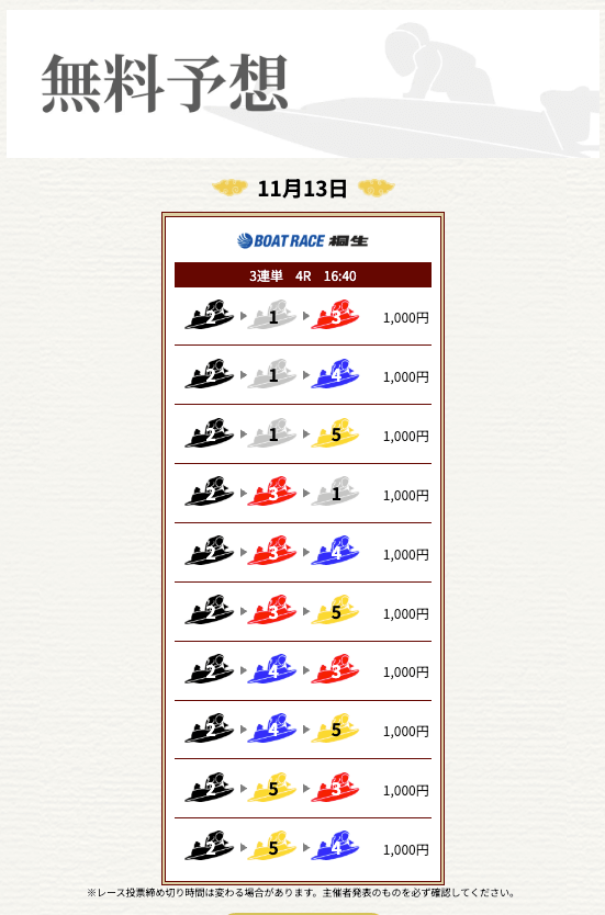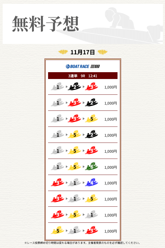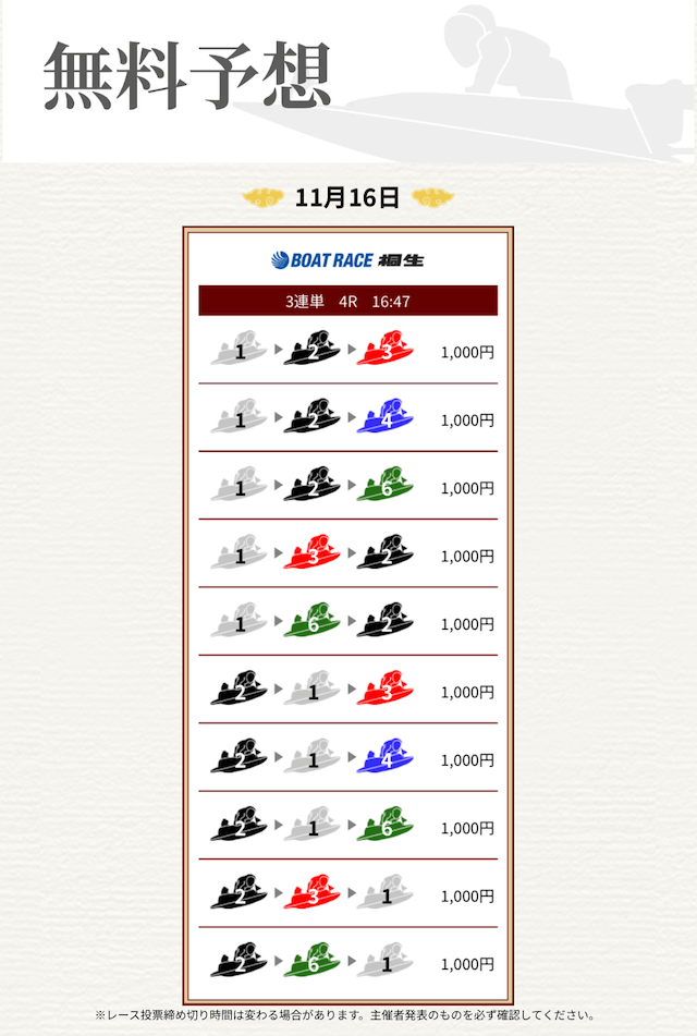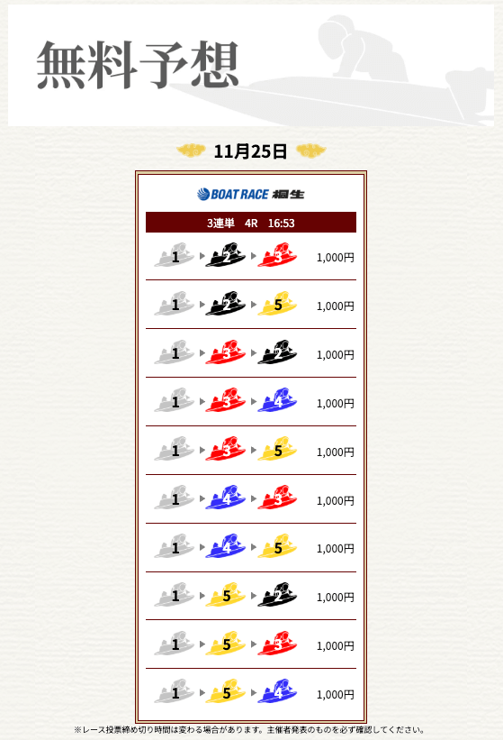 ’25/11/17 的中無料予想で16,000円獲得