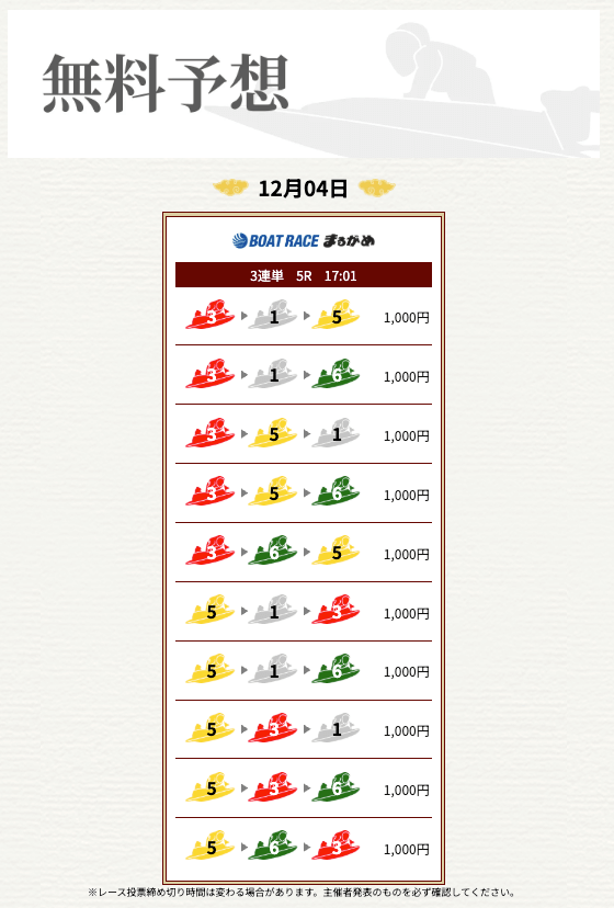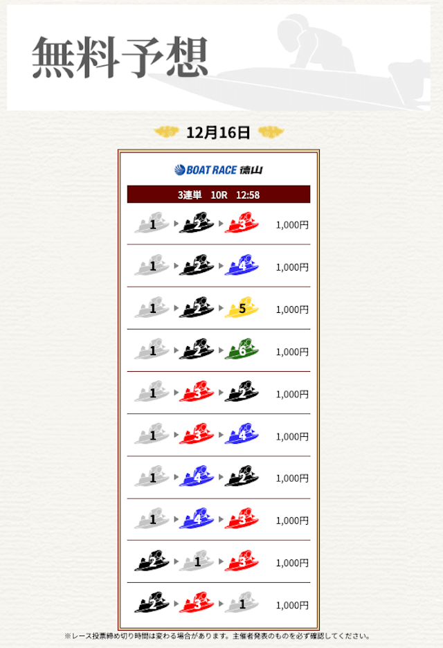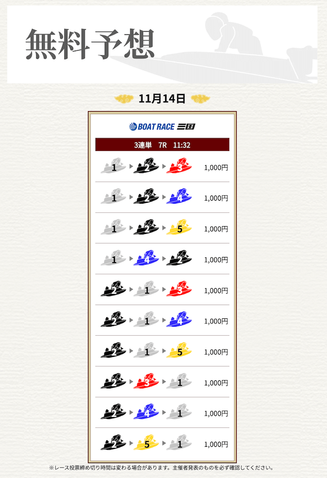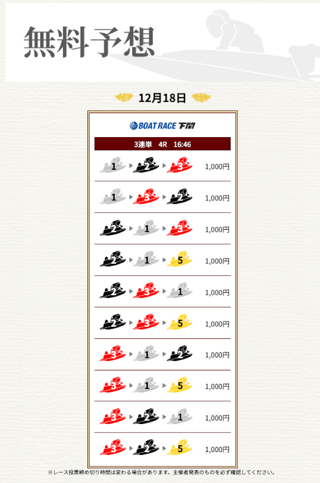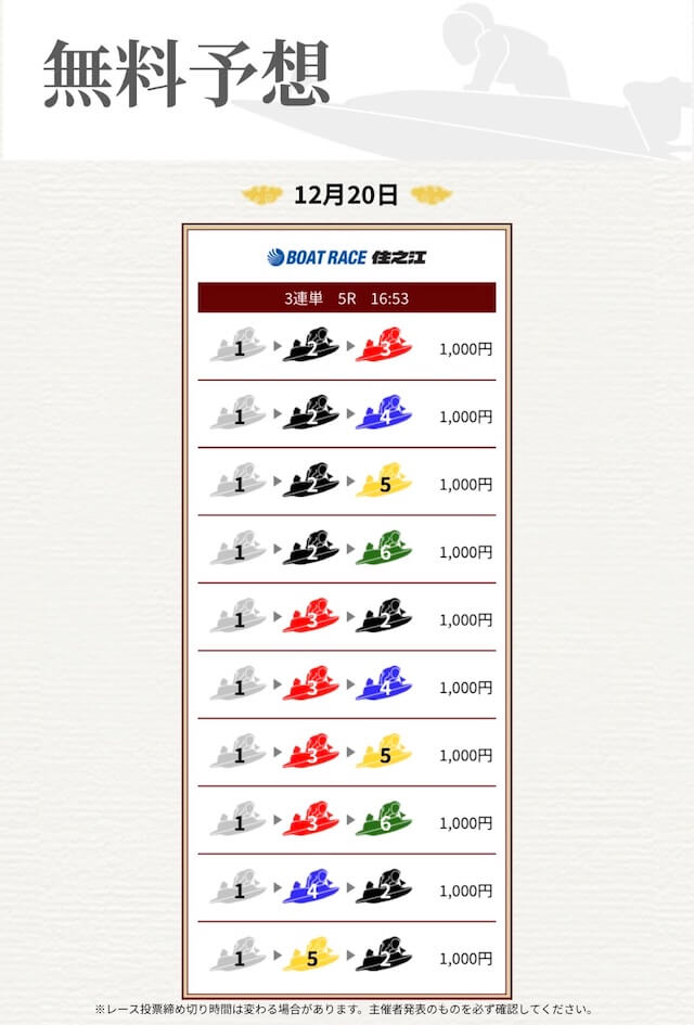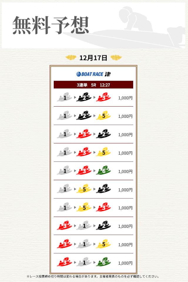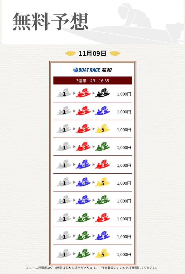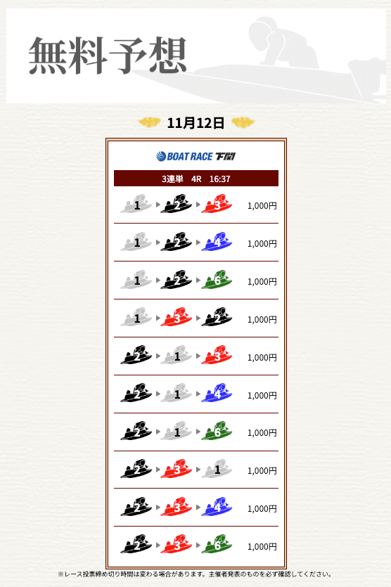 ’25/11/17 的中無料予想で16,000円獲得