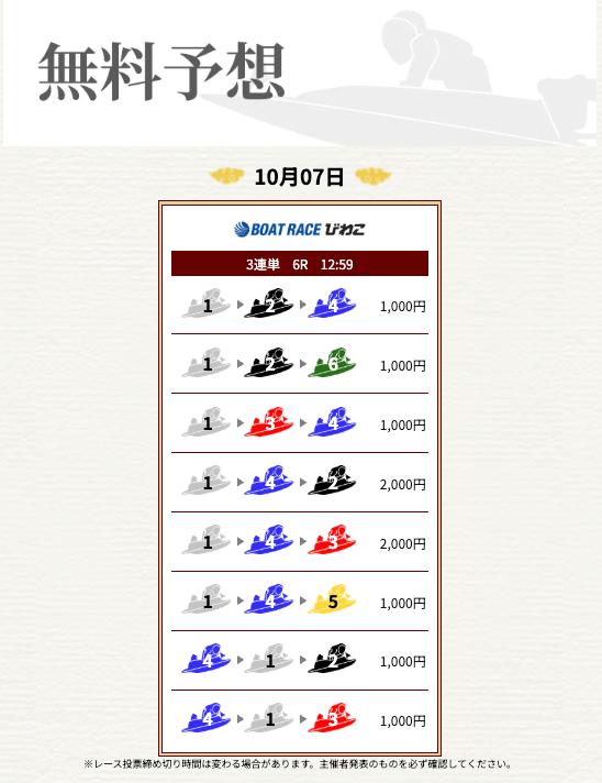 ’25/10/07 的中無料予想で16,300円獲得
