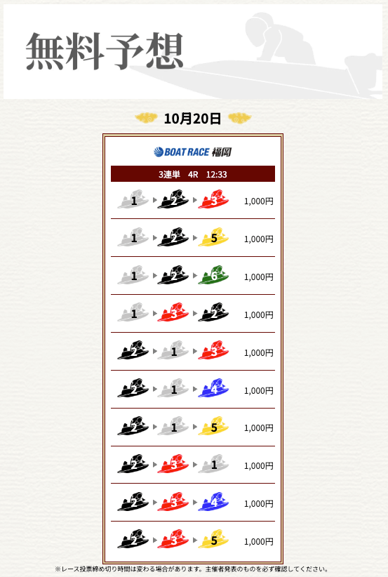 ’25/10/20 的中無料予想で11,900円獲得