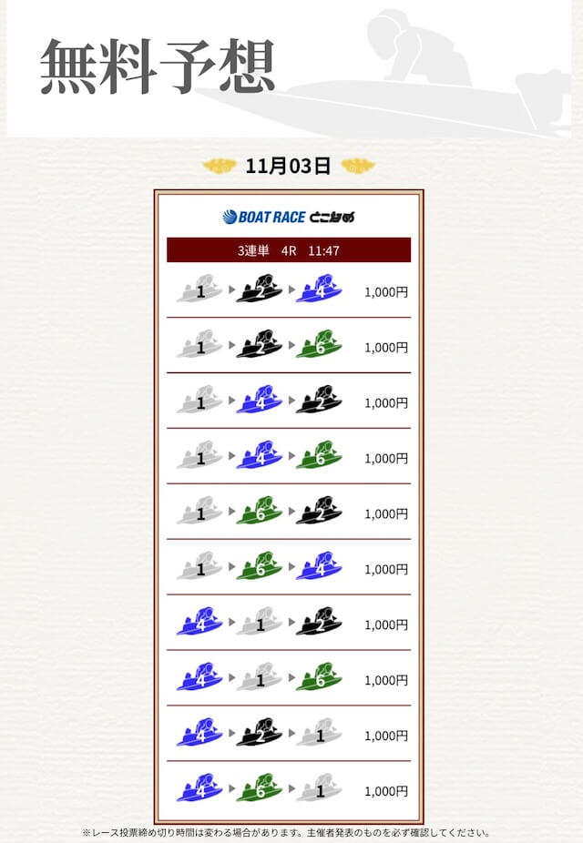 ’25/11/04 的中無料予想で11,700円獲得