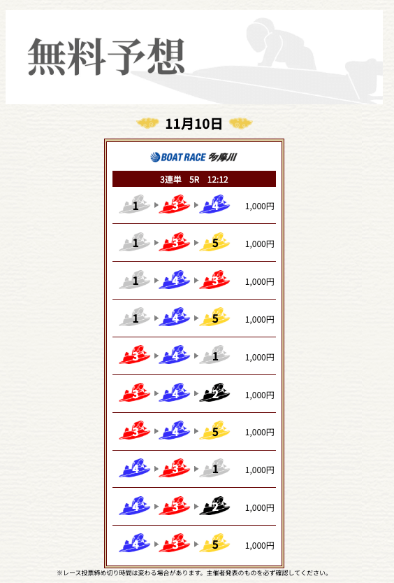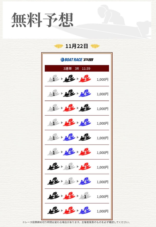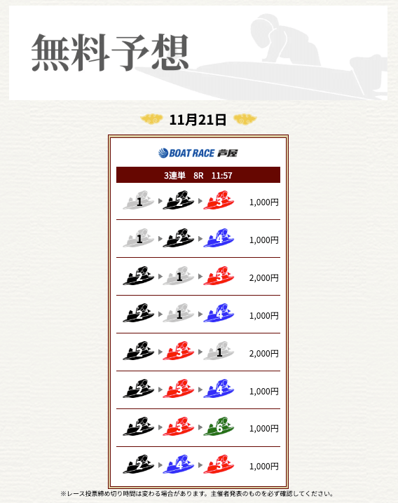 ’25/11/11 的中無料予想で23,100円獲得