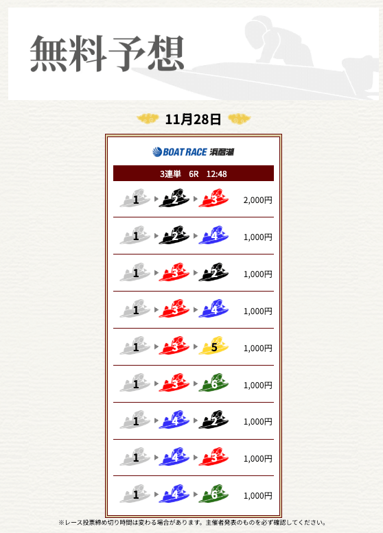 ’25/11/28 的中無料予想で21,500円獲得