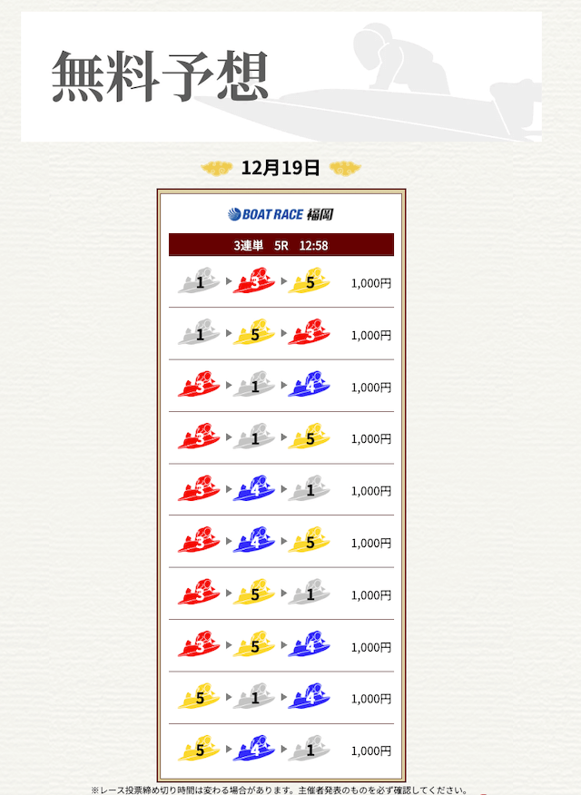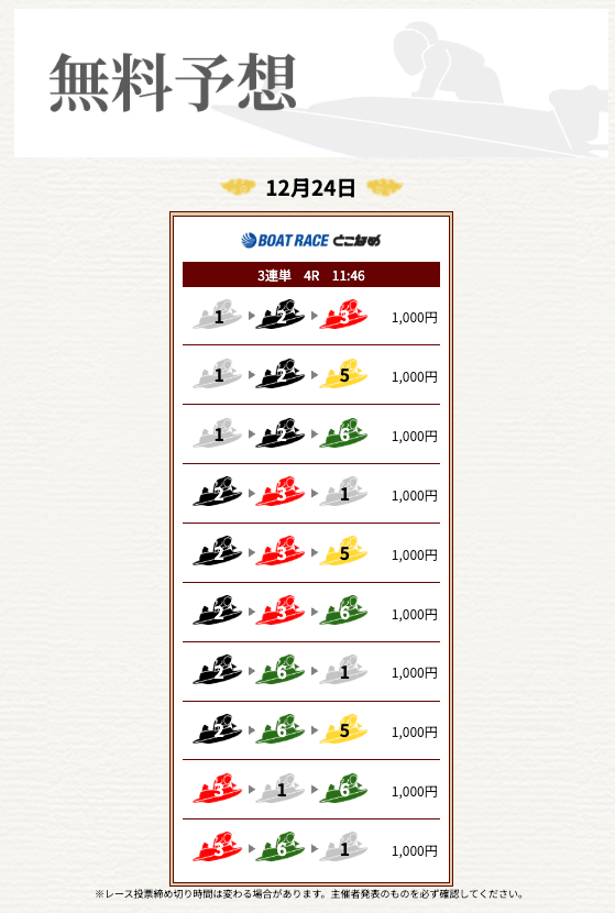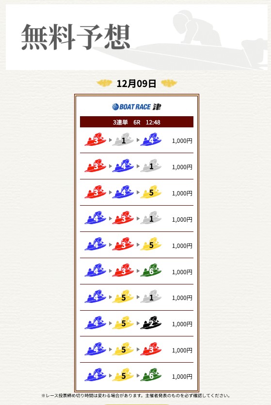 ’25/12/09 的中無料予想で25,500円獲得