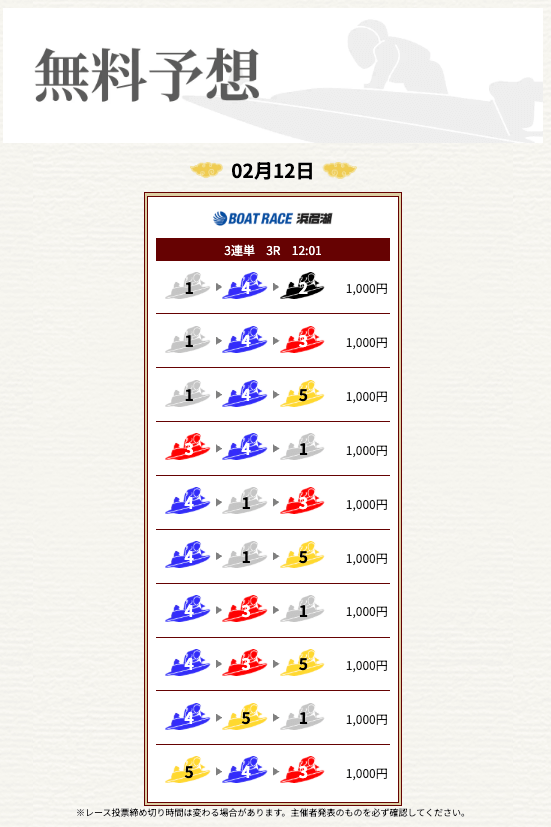 ’26/02/04 的中無料予想で10,800円獲得