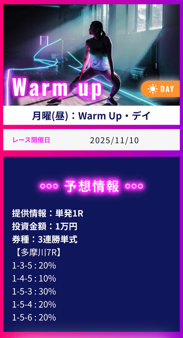 ’25/11/10 的中無料予想で22,000円獲得